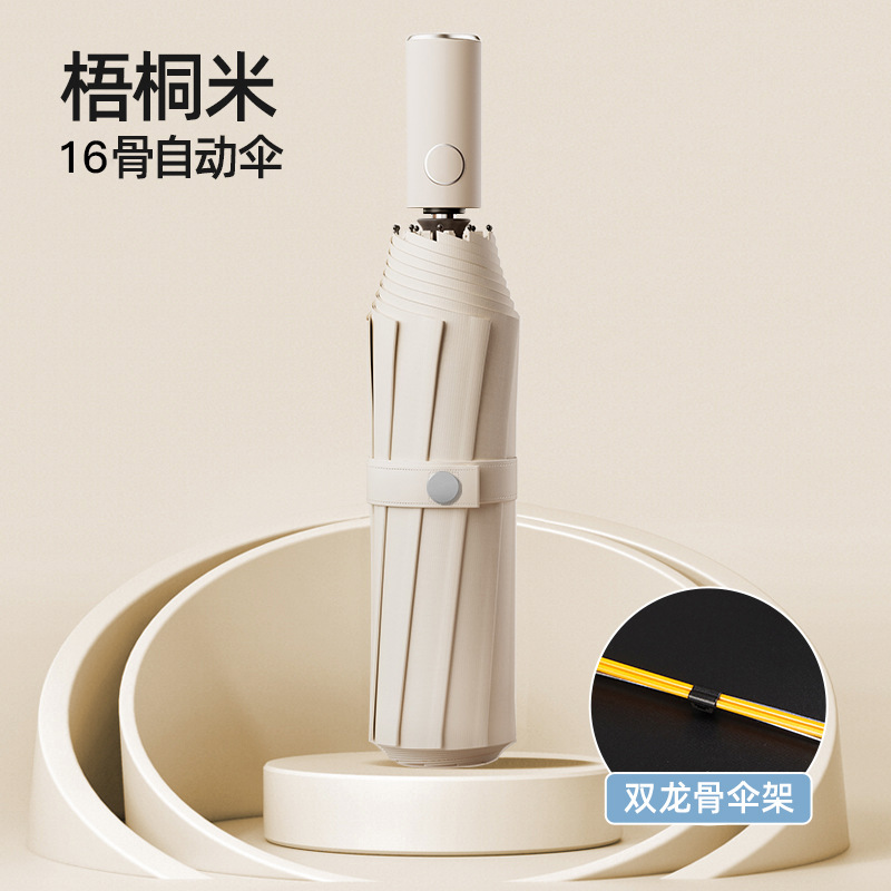 • [이중뼈 자동] 16 개의 뼈 검은 접착제 우산 우통 쌀