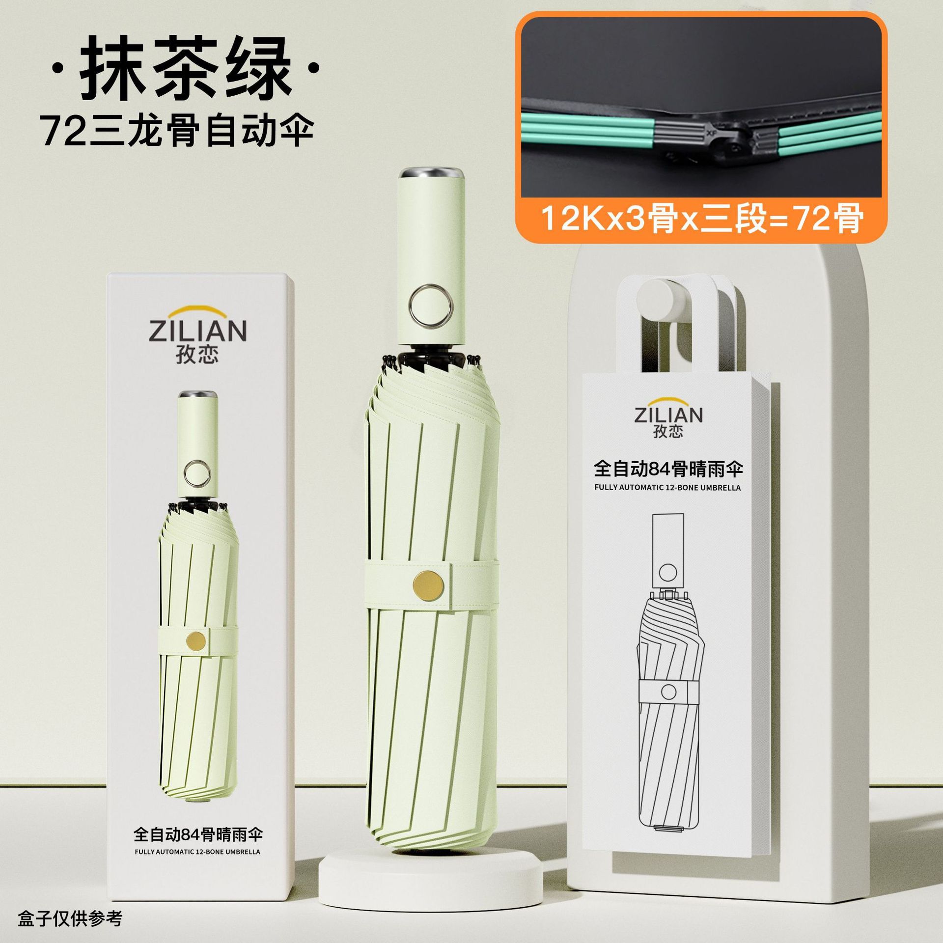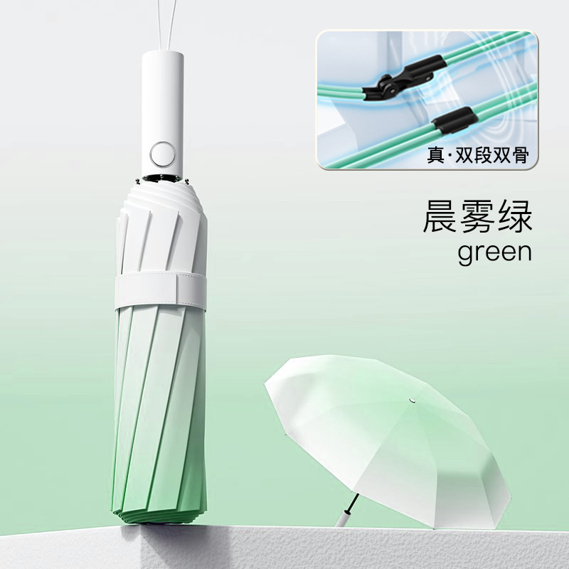 • [더블 뼈 자동] 16 뼈 검은 고무 맑음 우산 말차 녹색