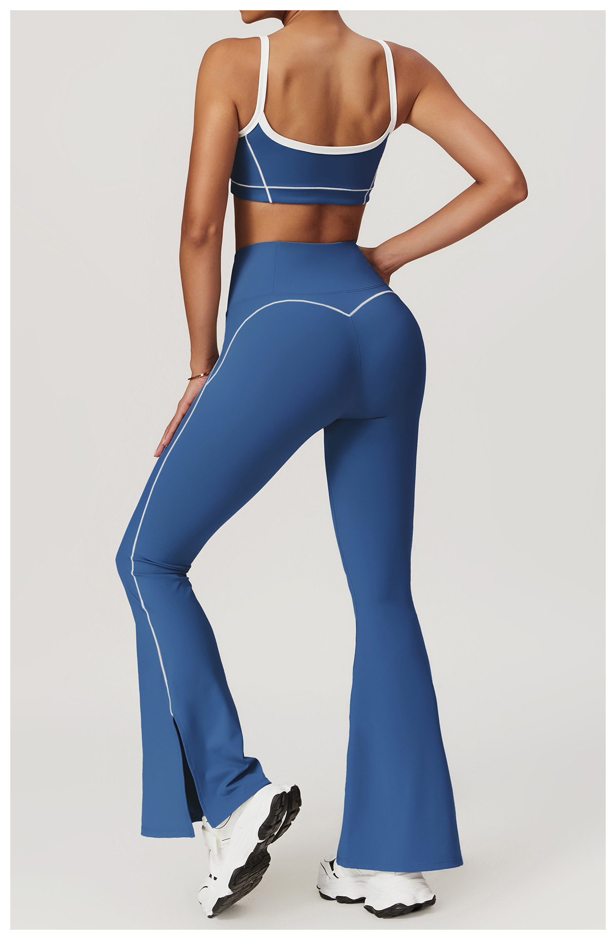 Zechuang 여름 벌거 벗은 타이트 뷰티 백 요가 의류 세트 여성 복부 엉덩이 리프팅 야외 달리기 세트 8838