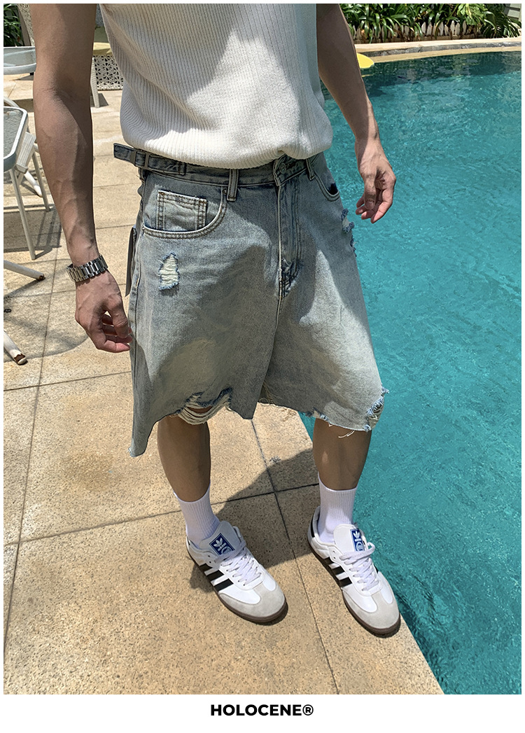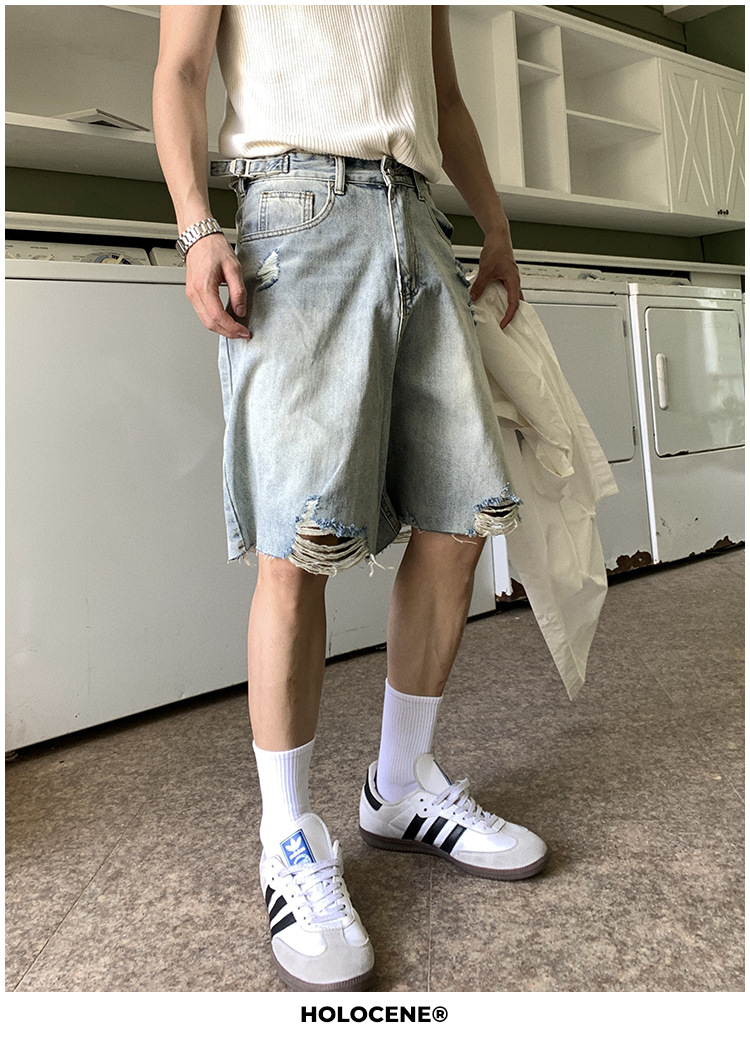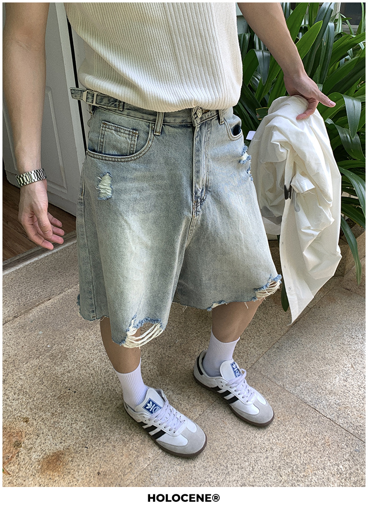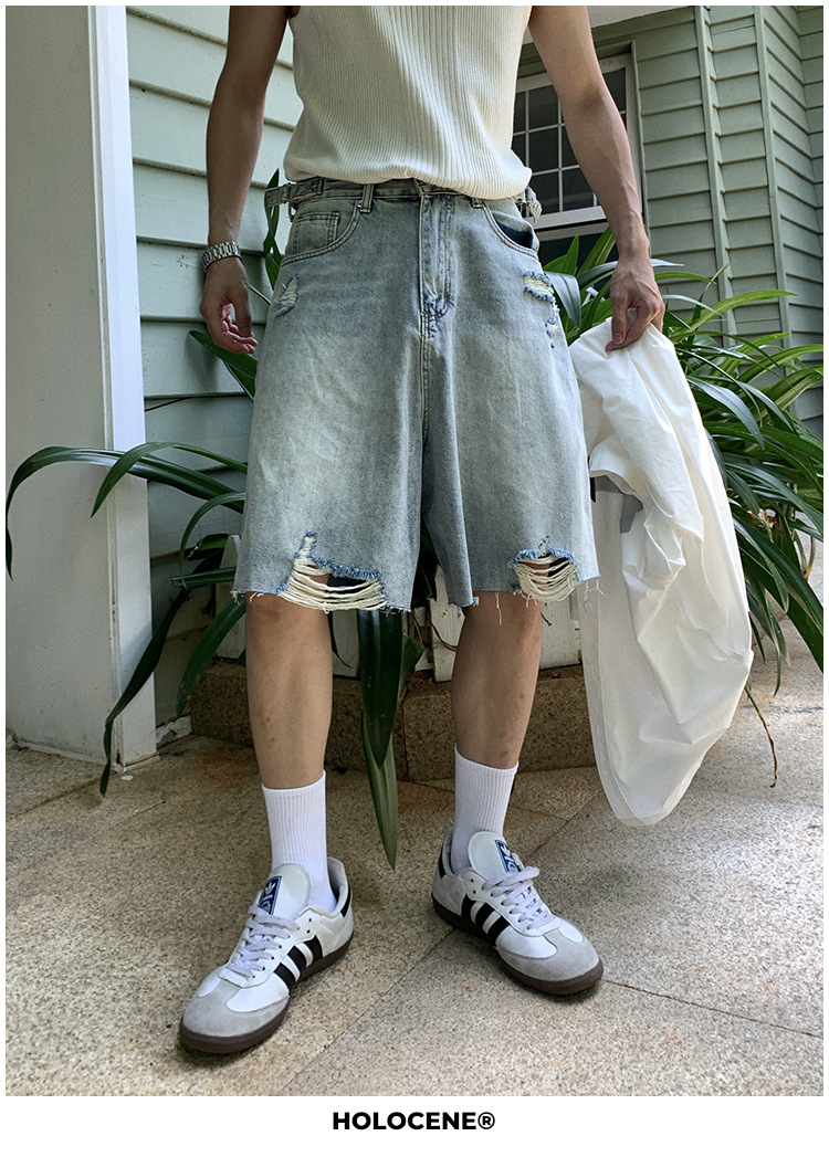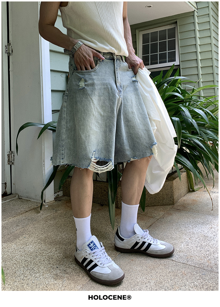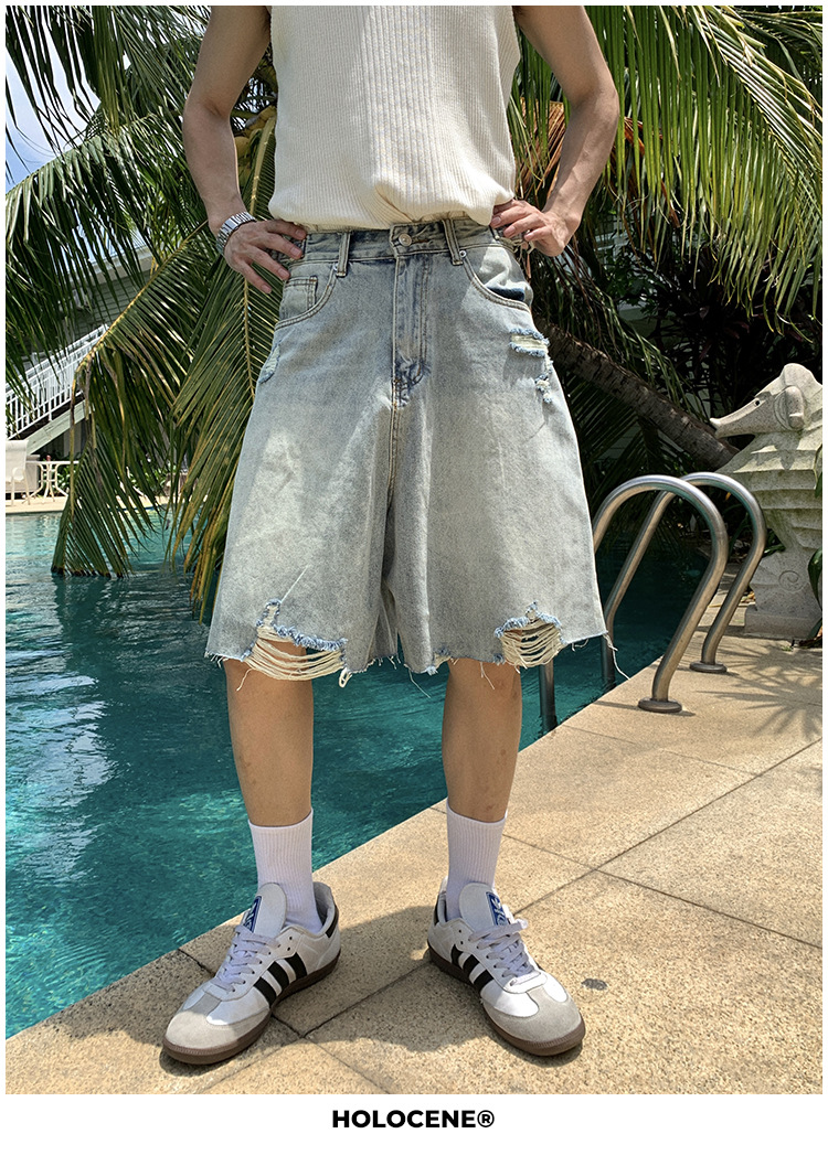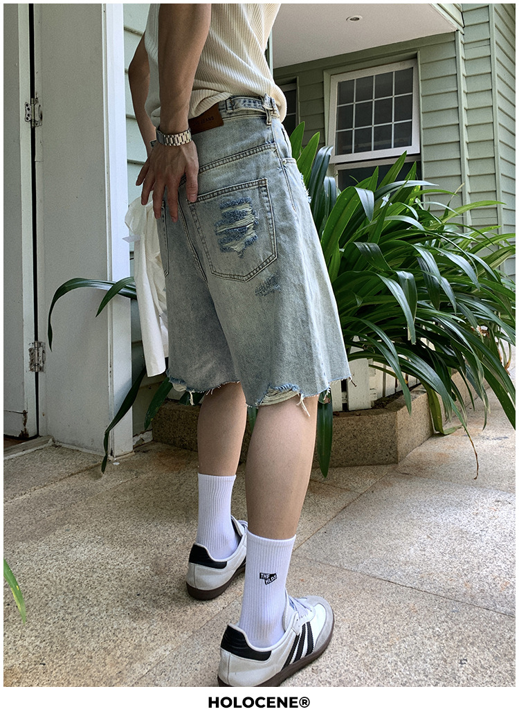 미국 스타일의 트렌디 한 브랜드 여름 오래된 씻은 데님 짧은 남자 여름 새로운 스타일 유행 캐주얼 느슨한 바지스토어 가기