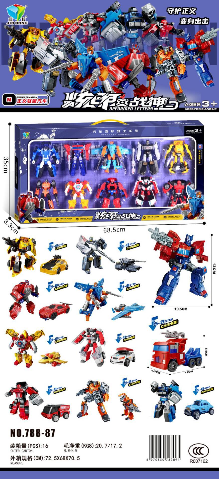 어린이 변형 로봇 모델 자동차 변형 전사 장난감 788-87 부모-자식 상호 작용 변형 메카 소년스토어 가기