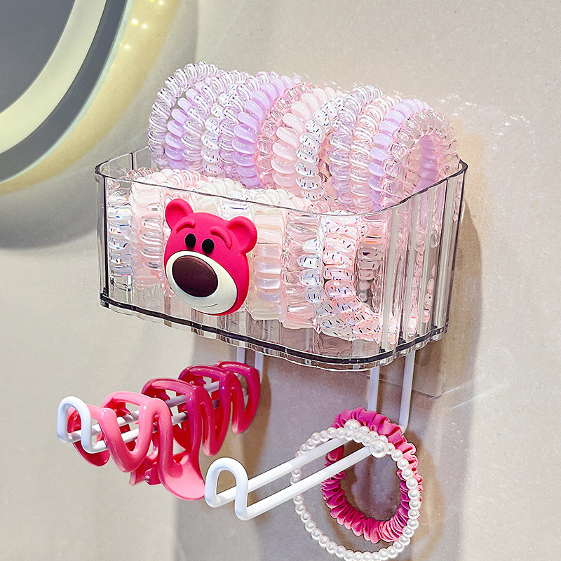 헤어 액세서리 스토리지 박스 펀치가없는 헤어 후프 벽 장착 스토리지 랙 귀여운 만화 어린이 헤드 로프 고무 밴드 스토리지 아티팩트