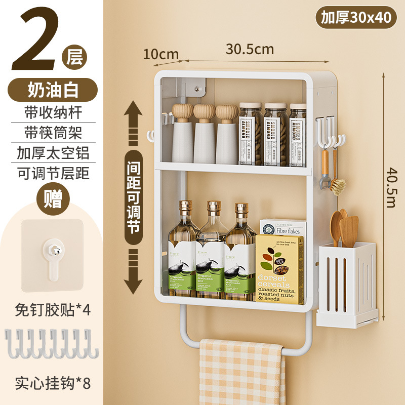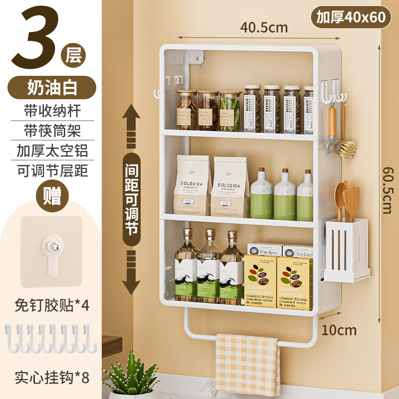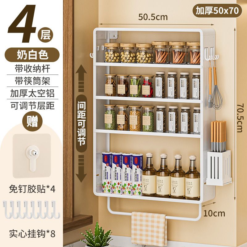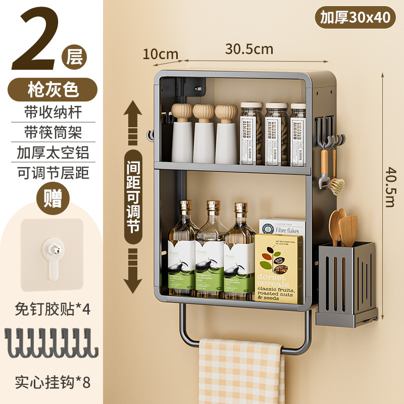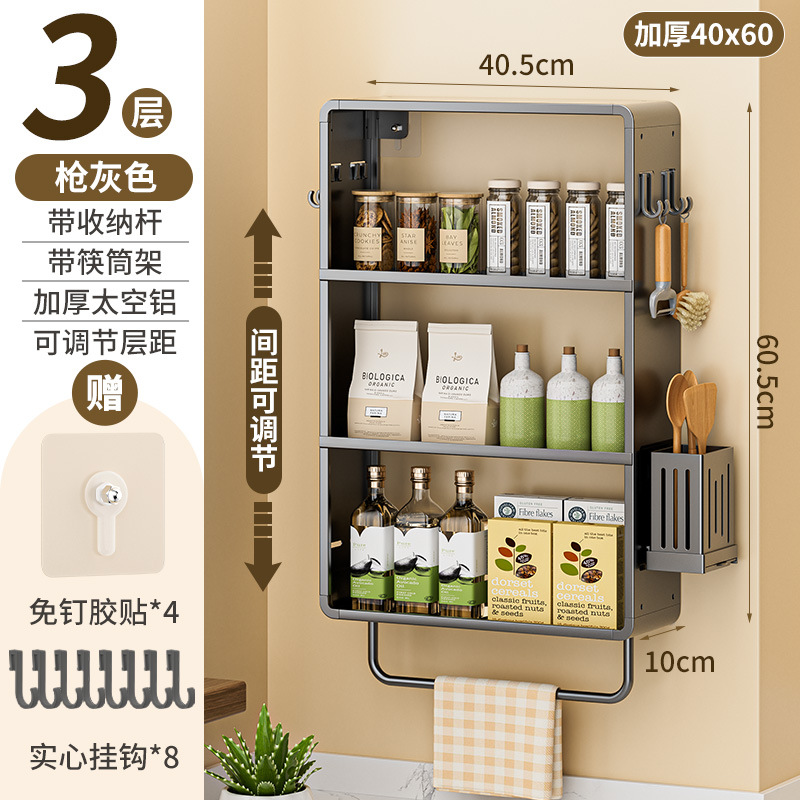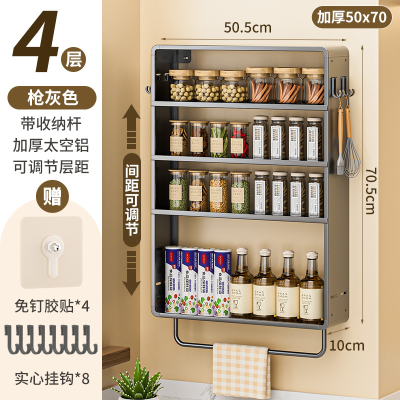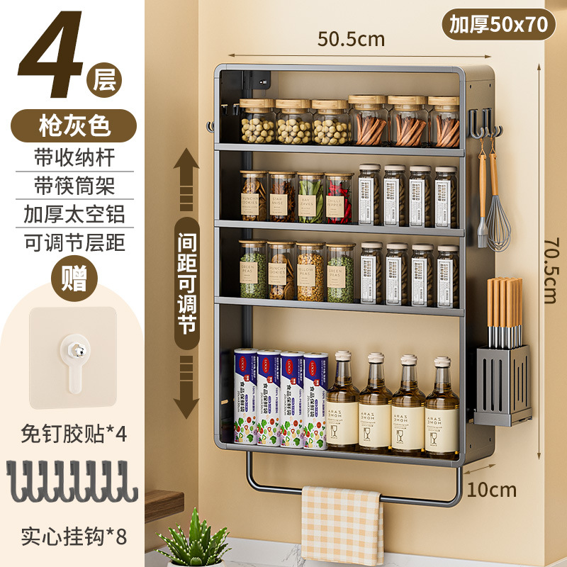 공간 알루미늄 주방 보관 랙 다층 벽걸이 양념 랙 펀치 프리 오일 소금 소스 식초 조미료 보관 랙