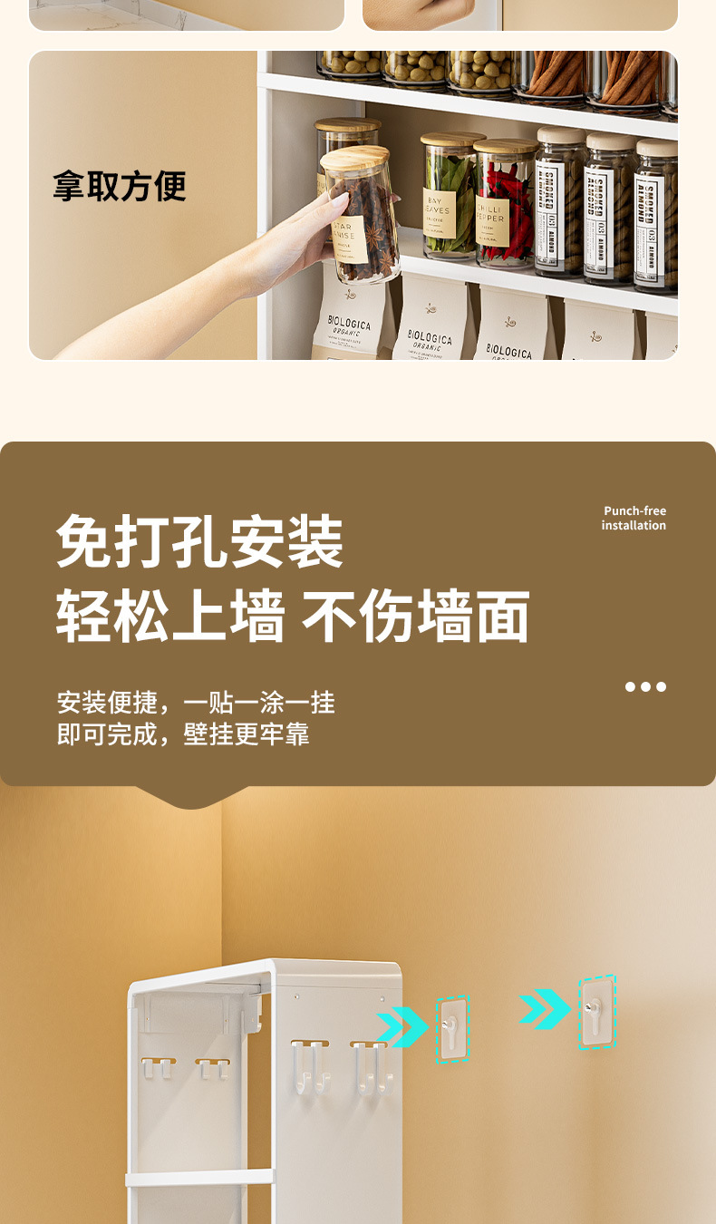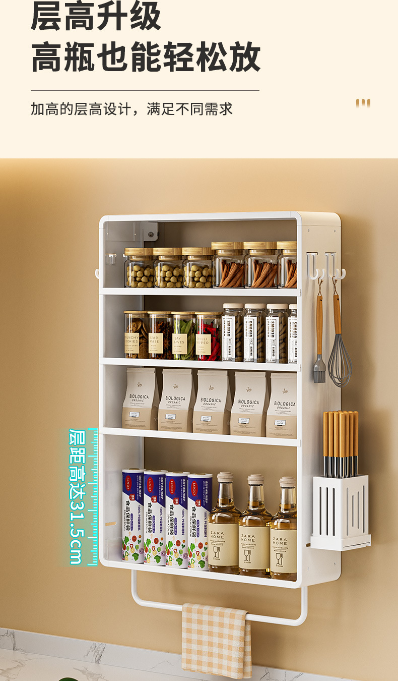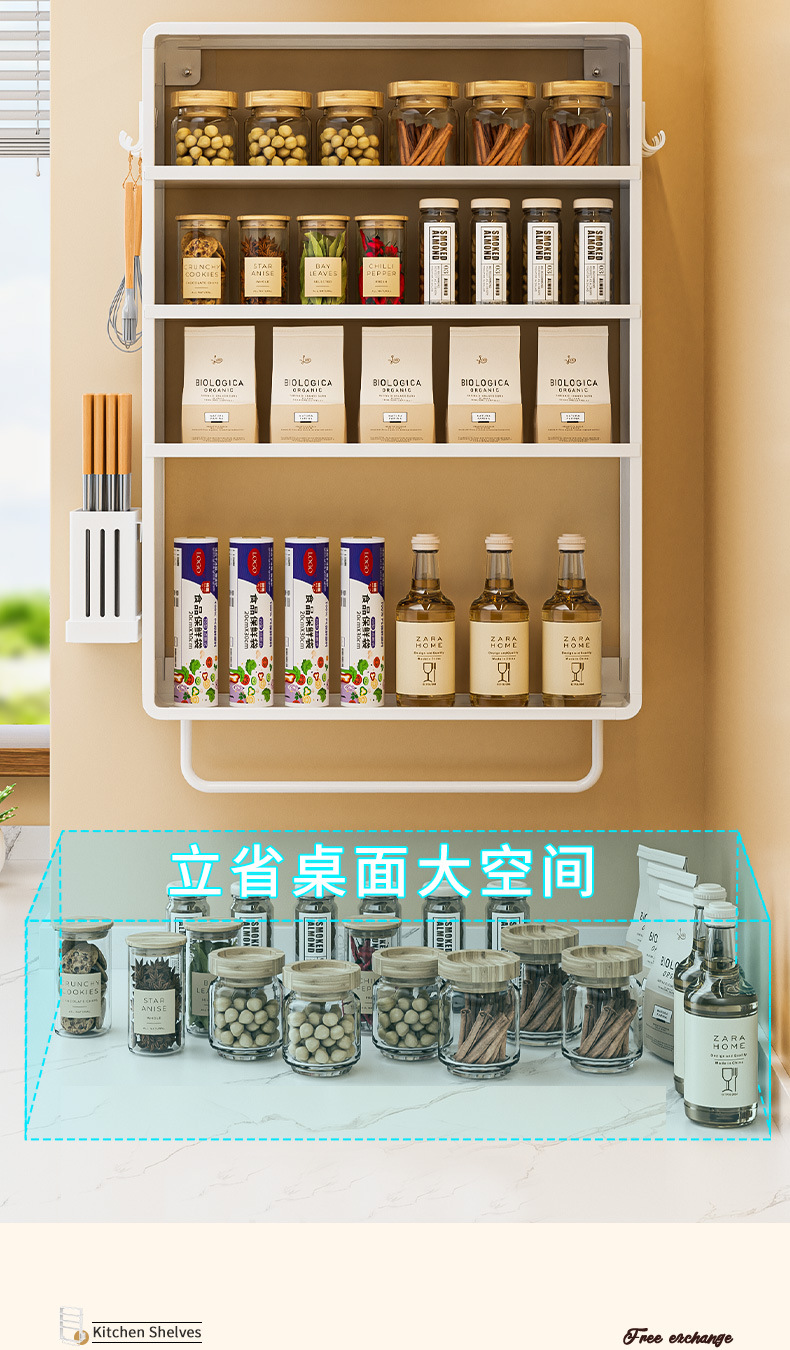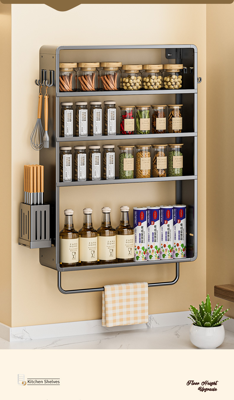 공간 알루미늄 주방 보관 랙 다층 벽걸이 양념 랙 펀치 프리 오일 소금 소스 식초 조미료 보관 랙