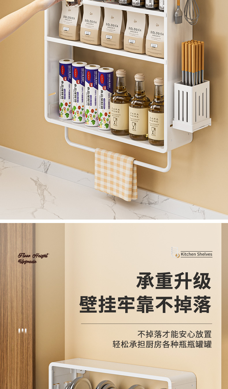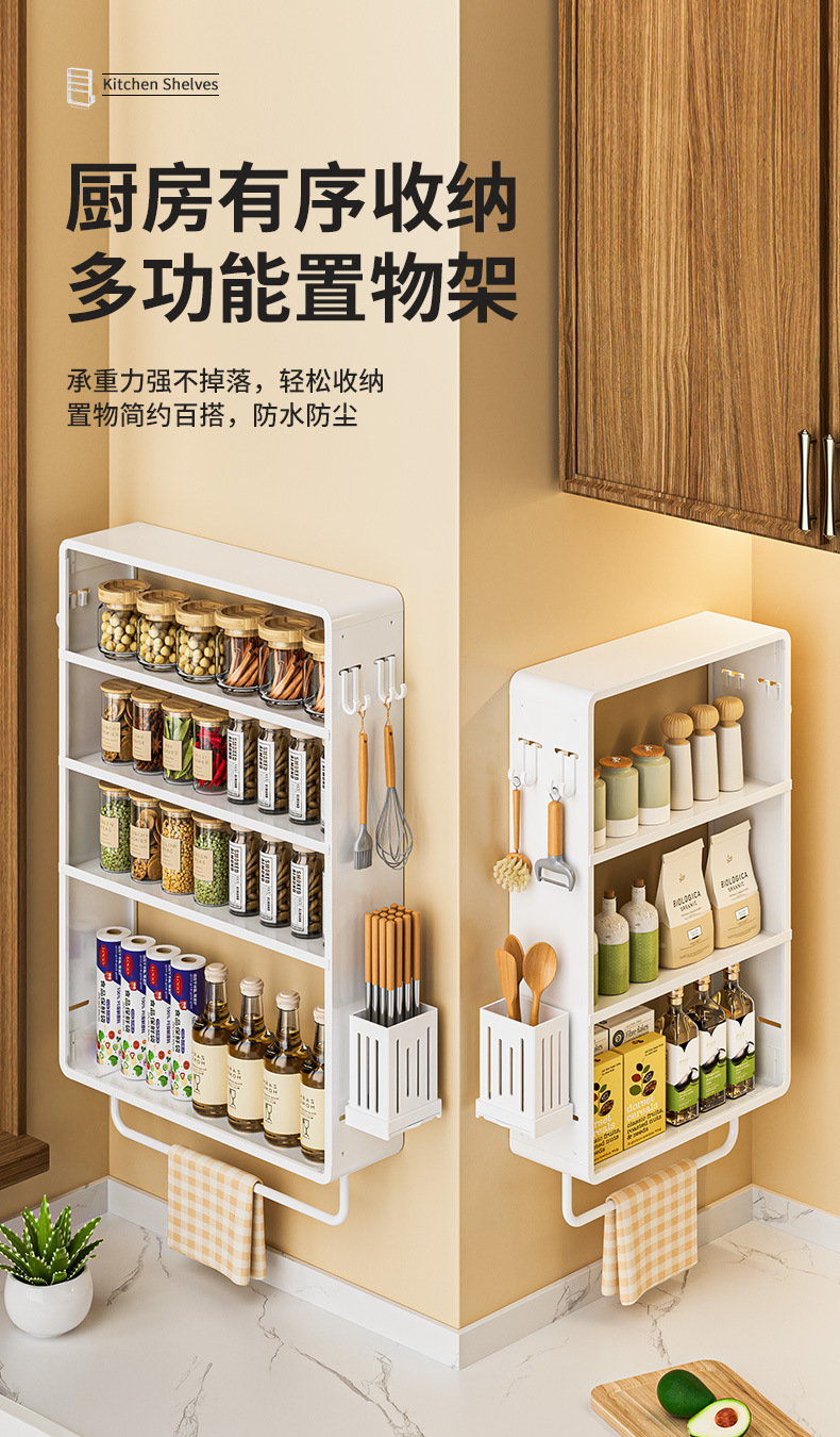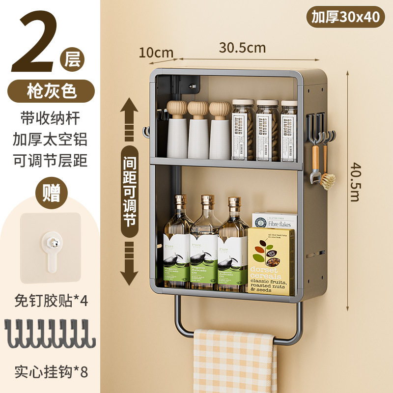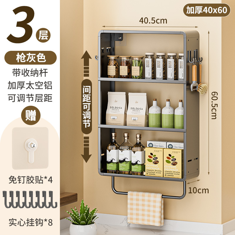 공간 알루미늄 주방 보관 랙 다층 벽걸이 양념 랙 펀치 프리 오일 소금 소스 식초 조미료 보관 랙스토어 가기