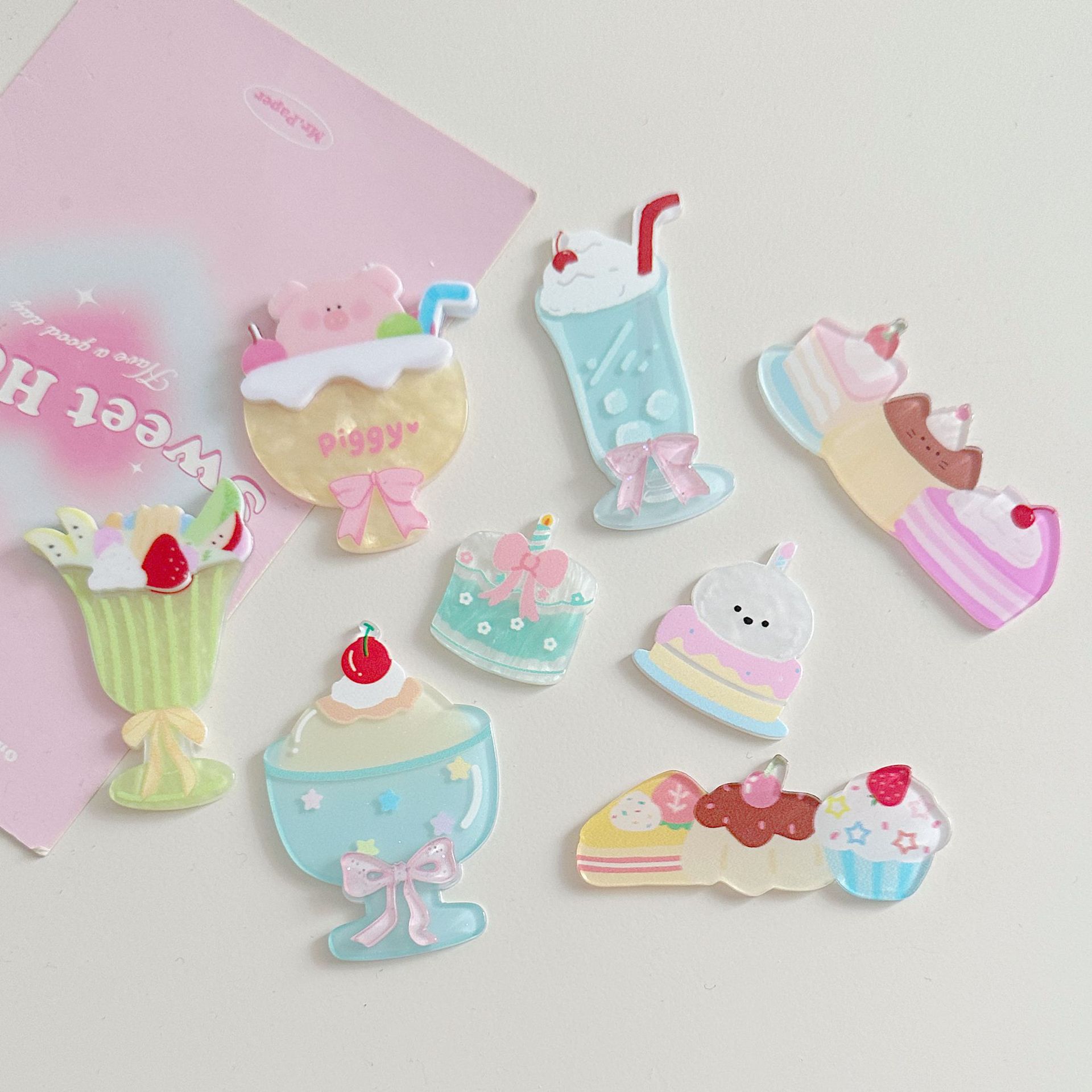 8 개의 작은 디저트 아크릴 액세서리 귀여운 새로운 DIY 수제 소재 가방 보석 만화 패치 신발 꽃 장식품스토어 가기