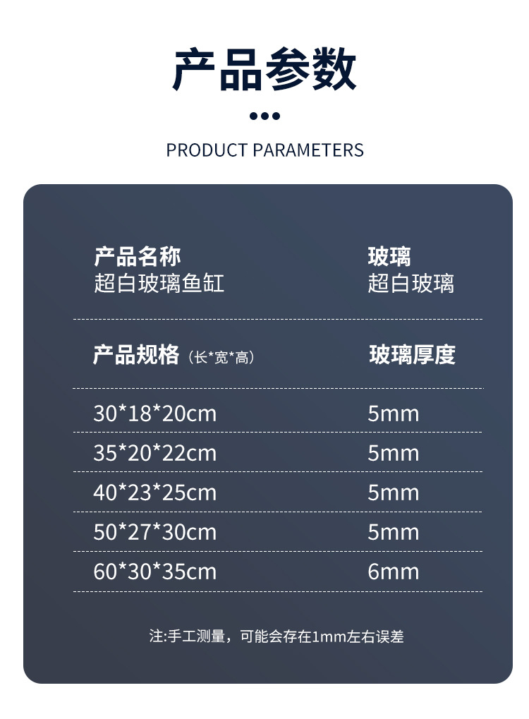 진지 초백색 직각 유리수조 가정용 탁상천 생태수조 조경수조 금어류 거북수조 도매