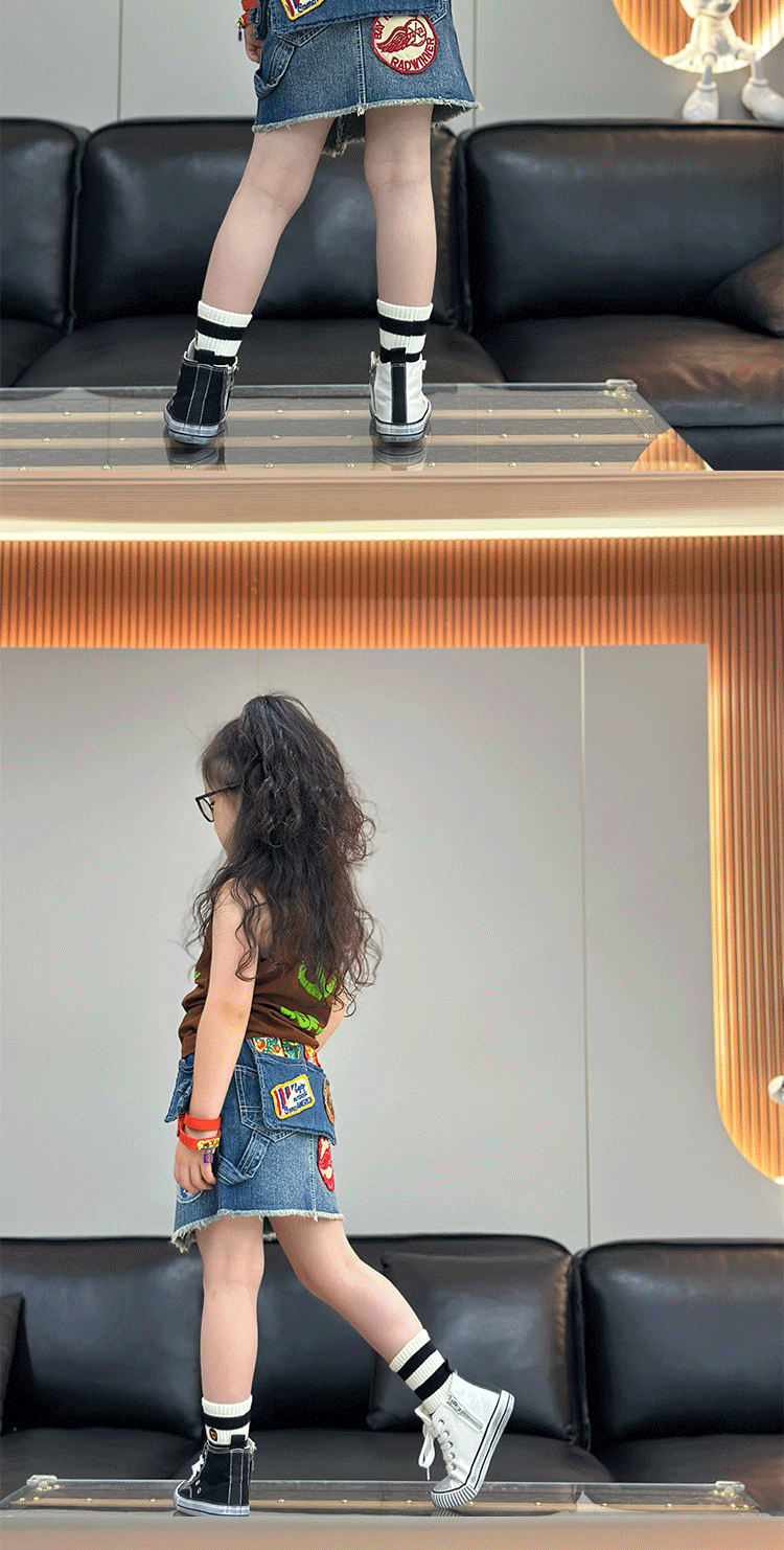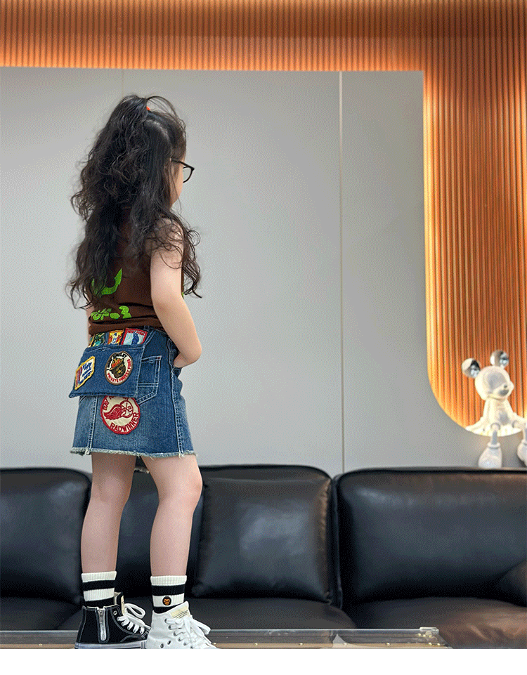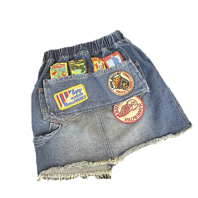 24 새로운 예술 포켓 레트로 배지 패치 데님 스커트 슈퍼 소프트 세탁 소녀의 캐주얼 올 매치스토어 가기