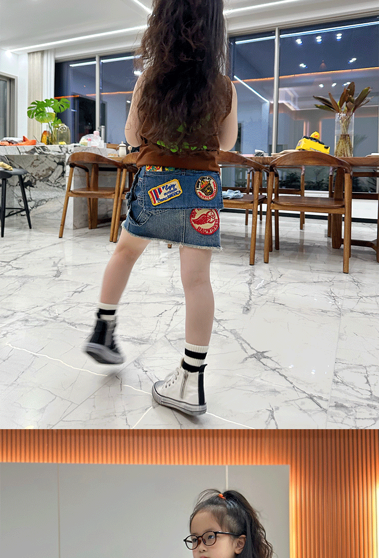 • 엉덩이 주머니 패치 데님 스커트