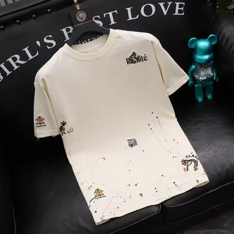 한국식 트렌디 자수 티셔츠 남성 반팔 반소매 하단셔츠 2023 새 여름 다재다능한 라운드 넥 탑