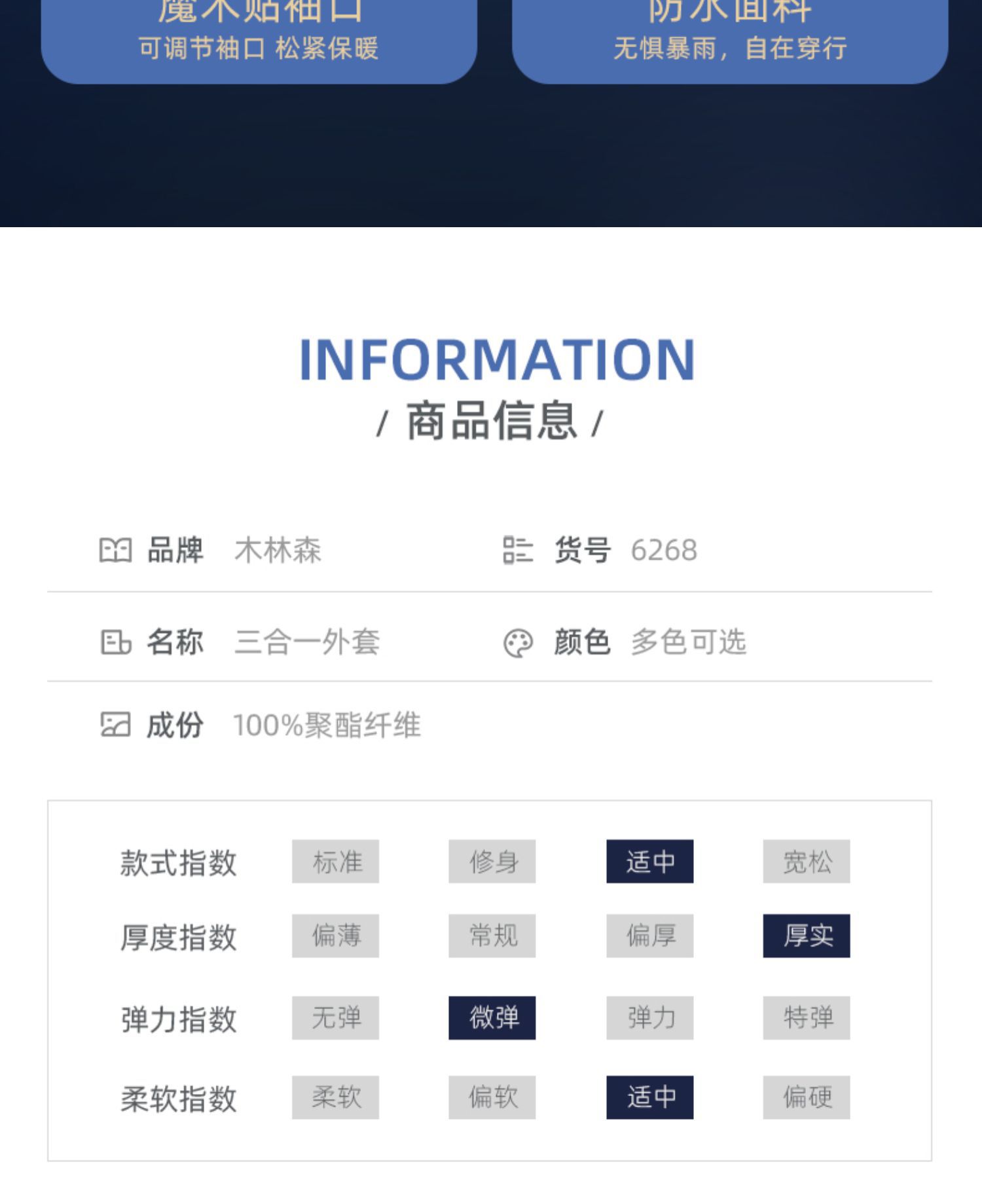 • 6268 남성용 블랙 [쓰리인원/탈부착형 라이너]