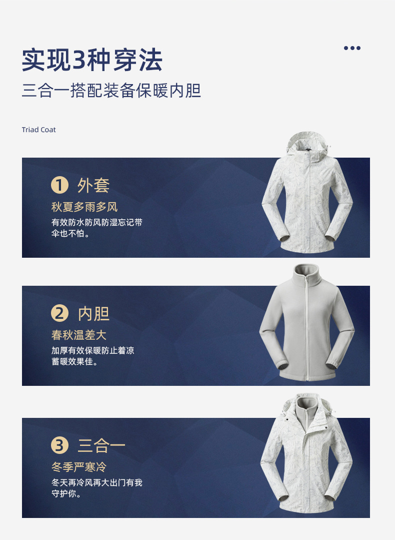 여성용 3 대 1 분리 방수 방풍 재킷 여성 봄과 가을 야외 등산 재킷스토어 가기