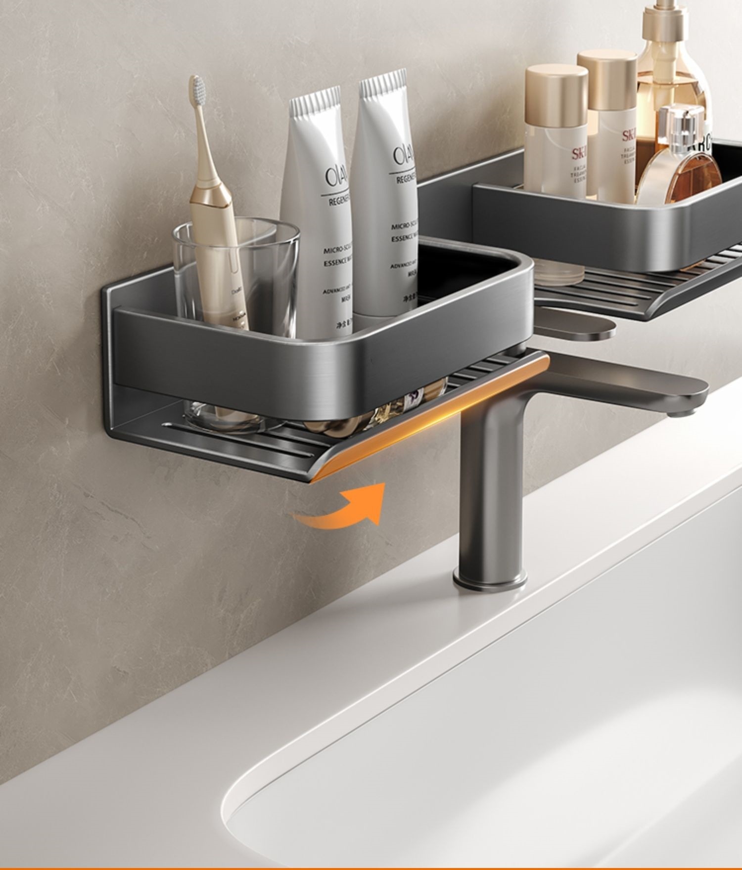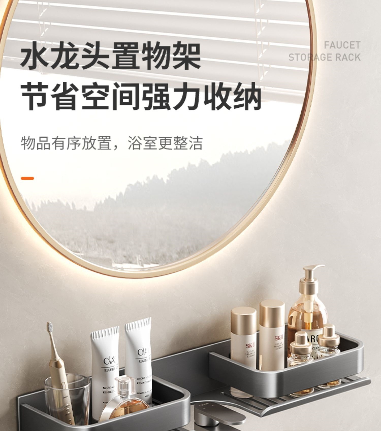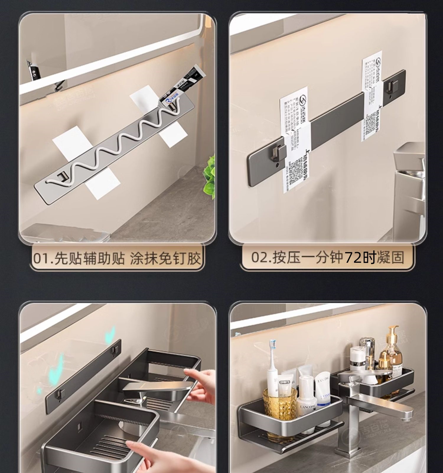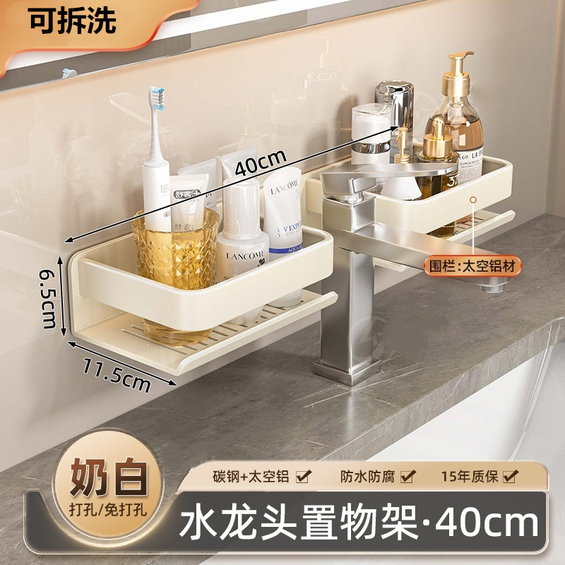 공간 알루미늄 펀치가없는 욕실 보관 랙 밀크 화이트 욕실 벽걸이 세탁기 거울 전면 수도꼭지 보관 랙