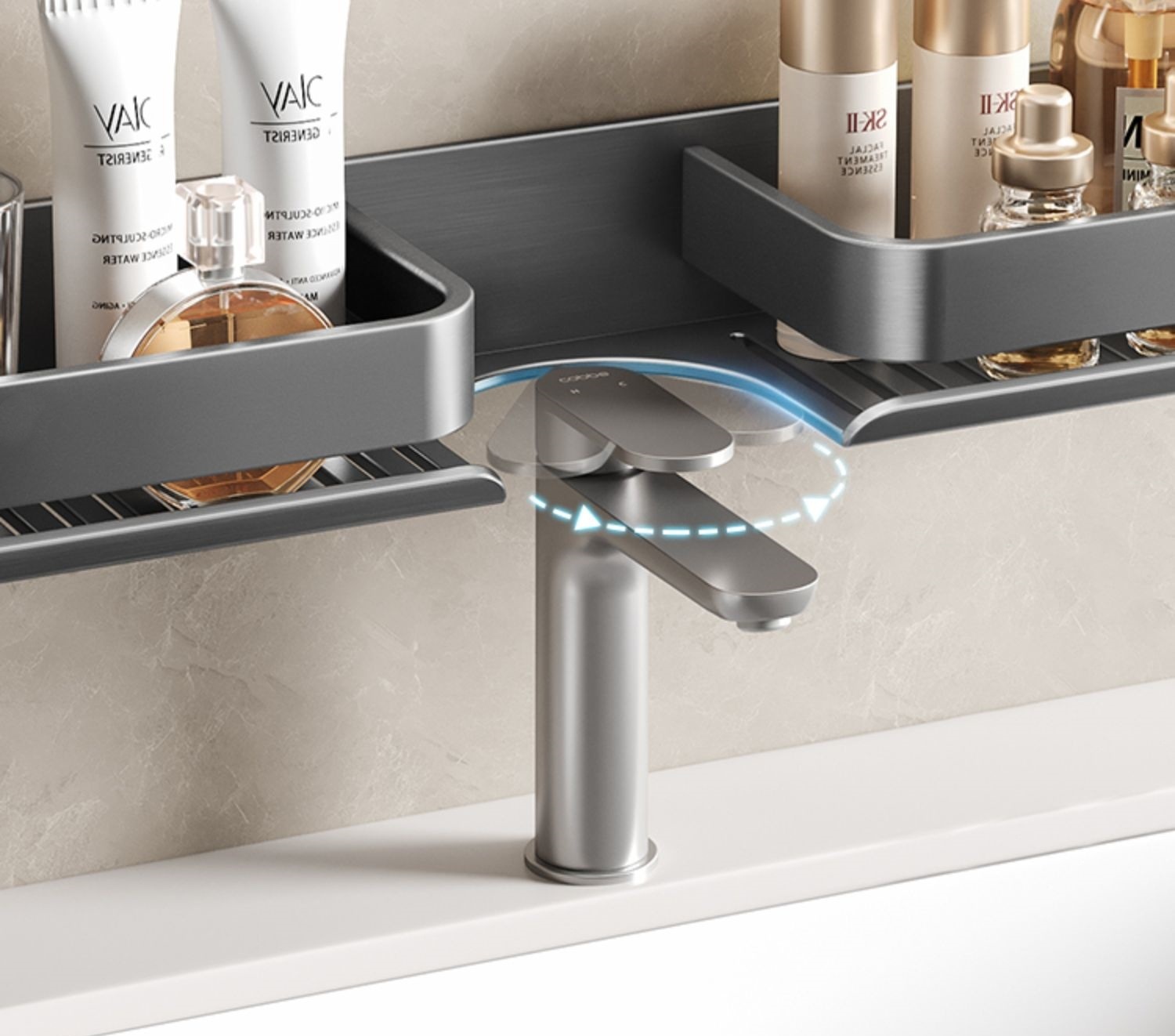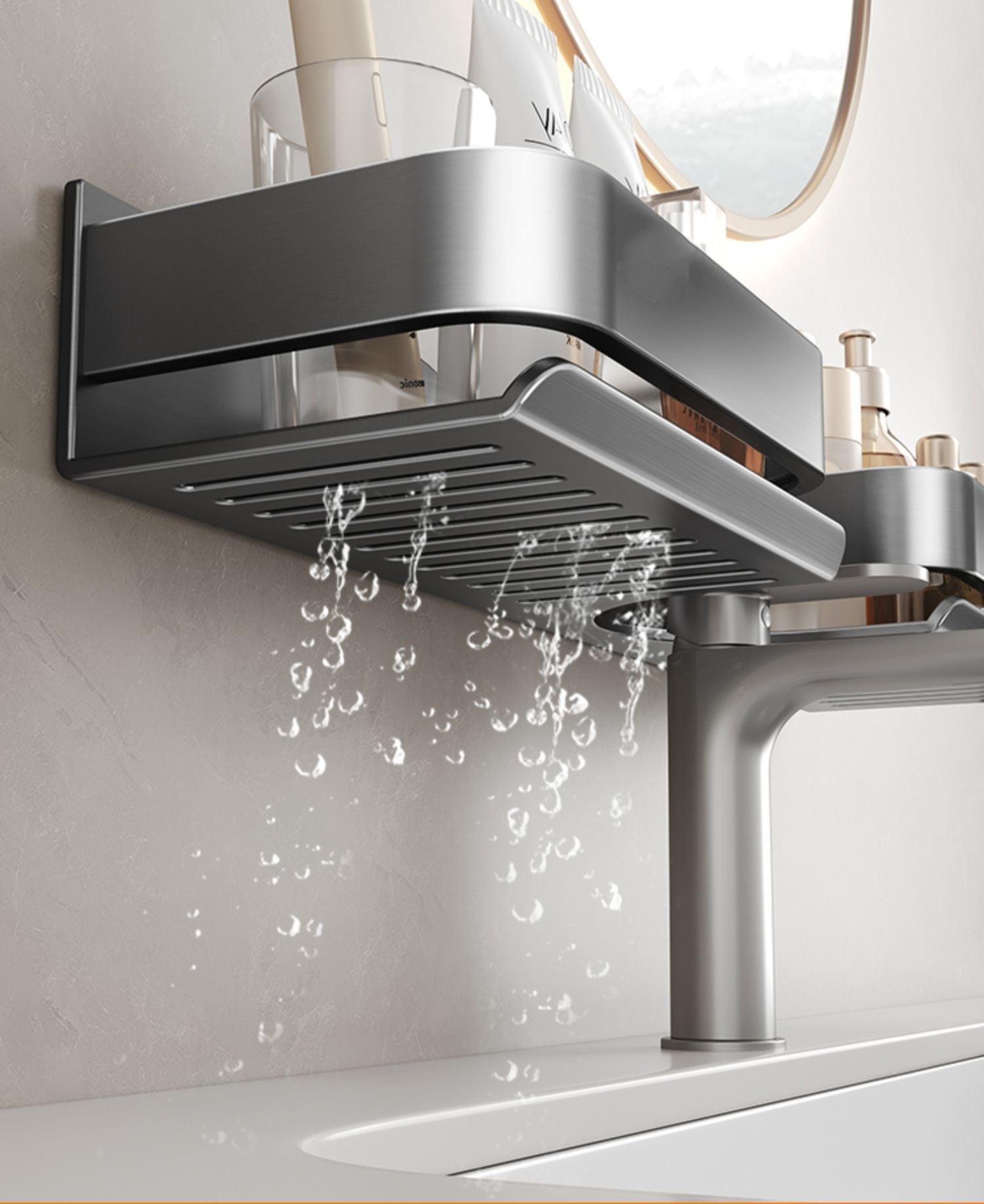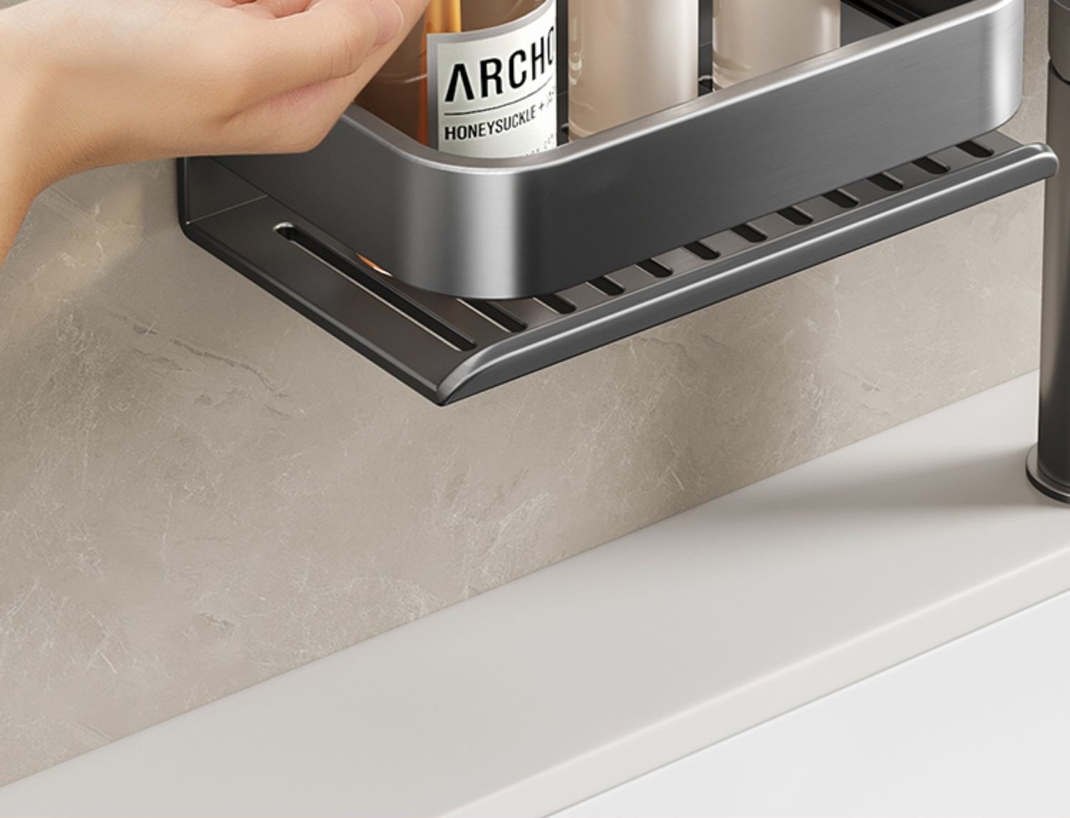공간 알루미늄 펀치가없는 욕실 보관 랙 밀크 화이트 욕실 벽걸이 세탁기 거울 전면 수도꼭지 보관 랙