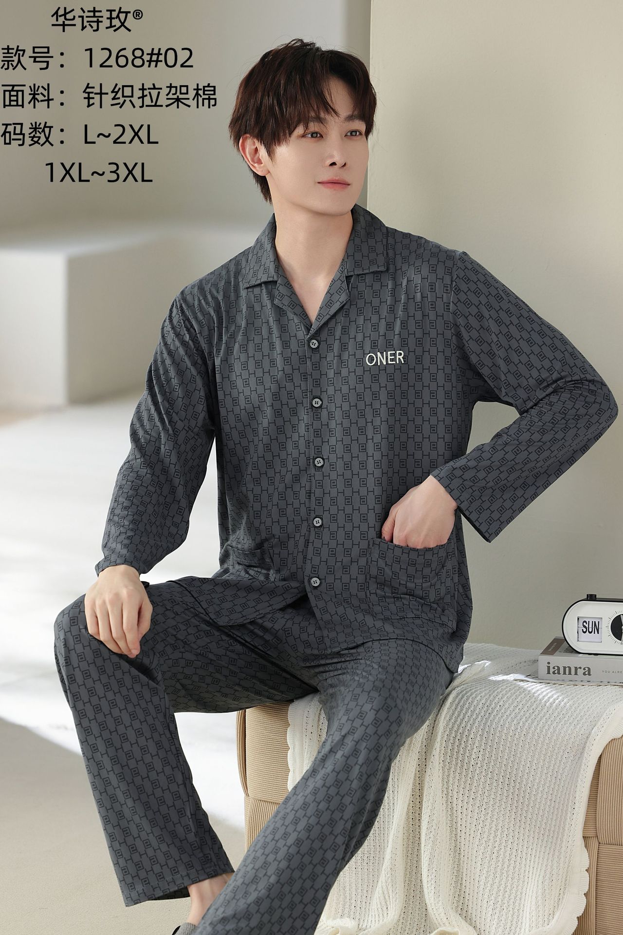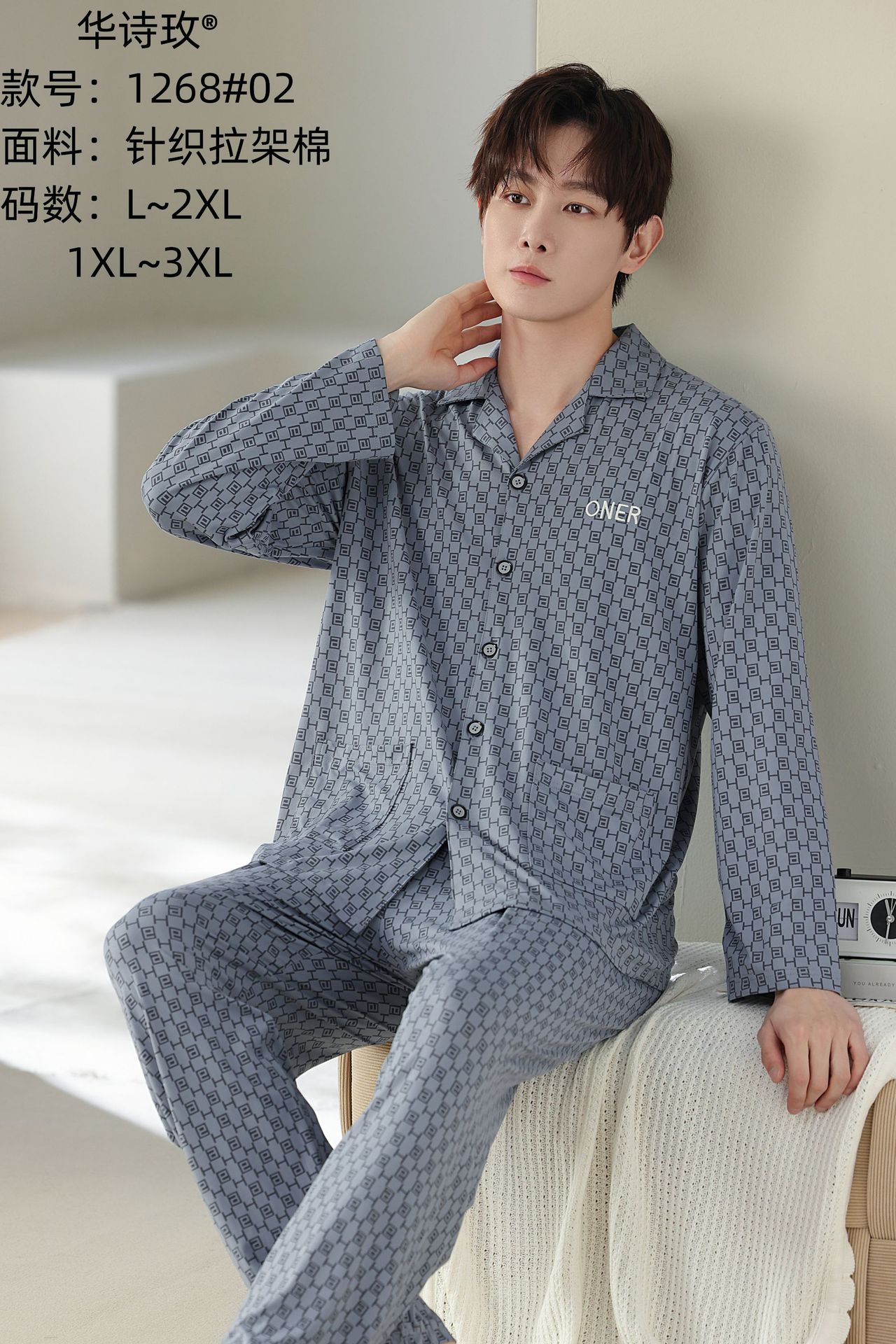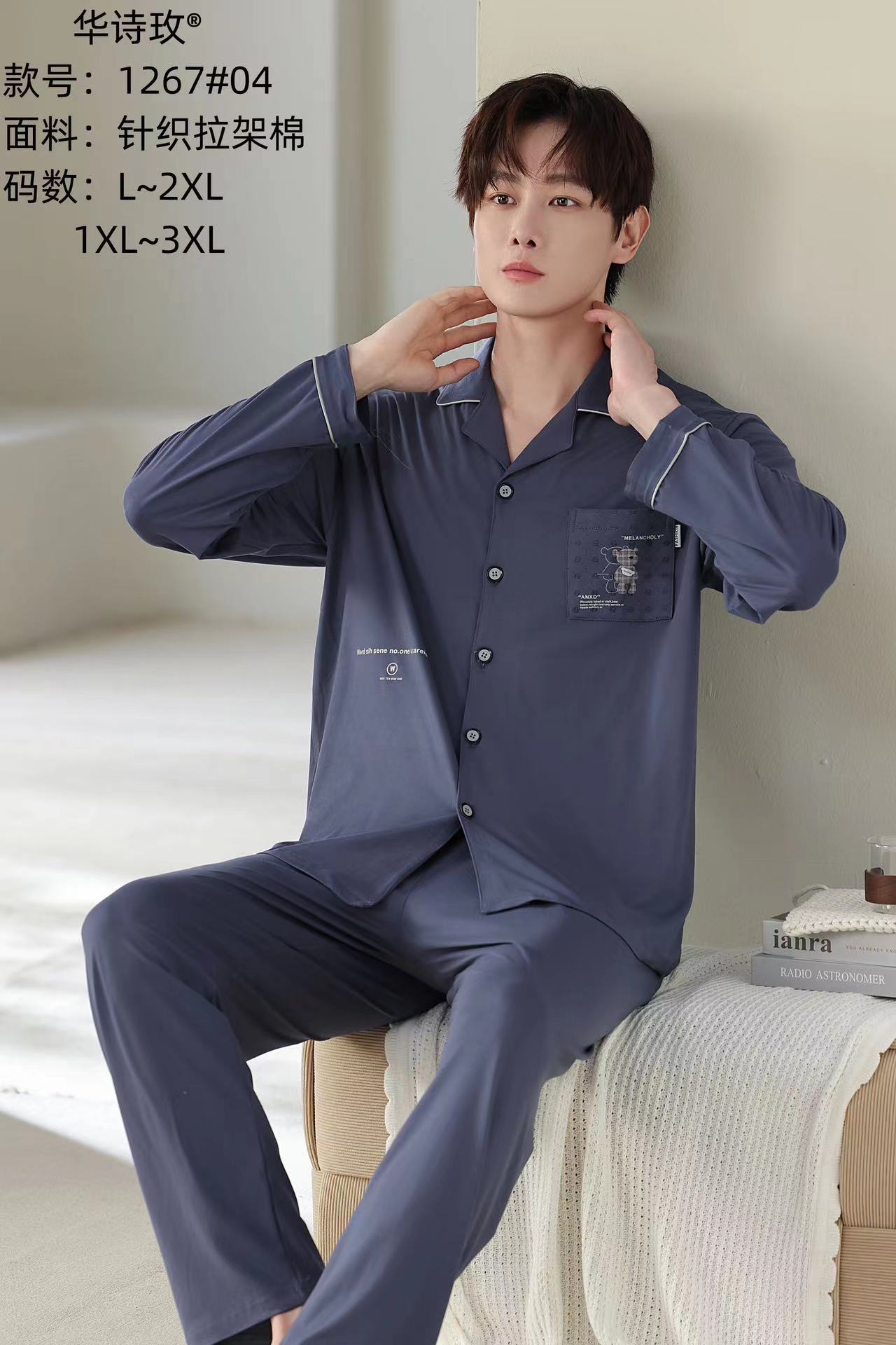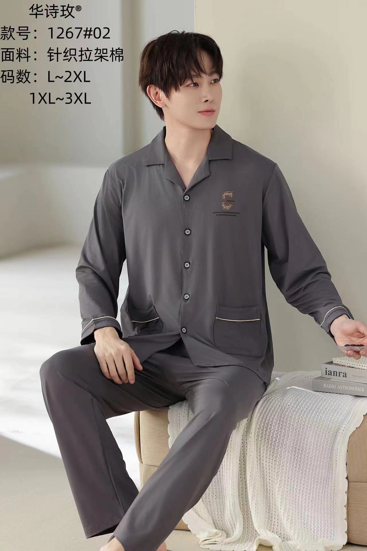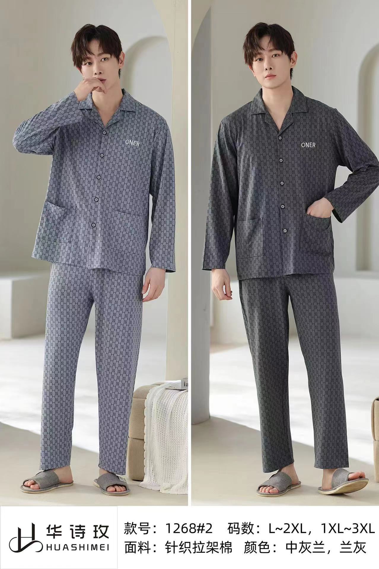 Huashi Mei High Crotch Anti-Cotton 남자 1267 고급 캐주얼 편안한 잠옷 남자 봄과 가을 긴 소매 여름스토어 가기