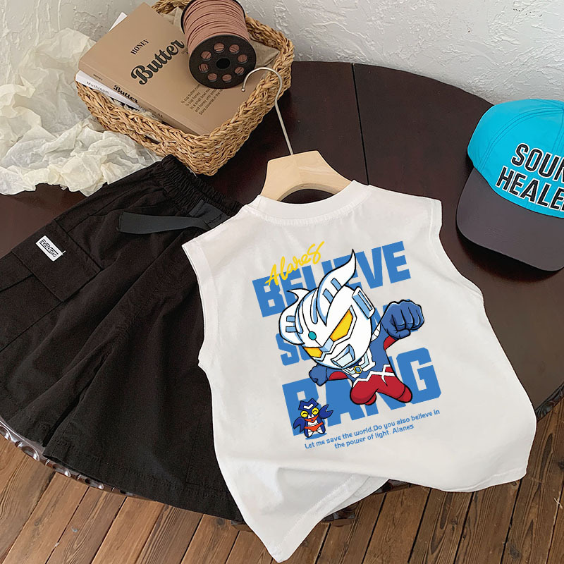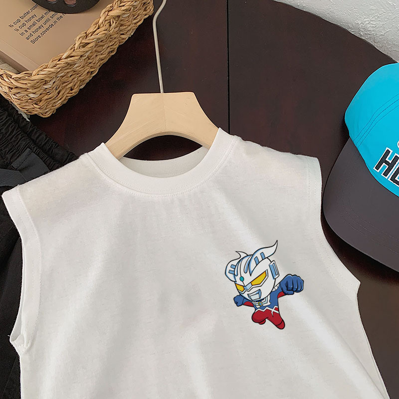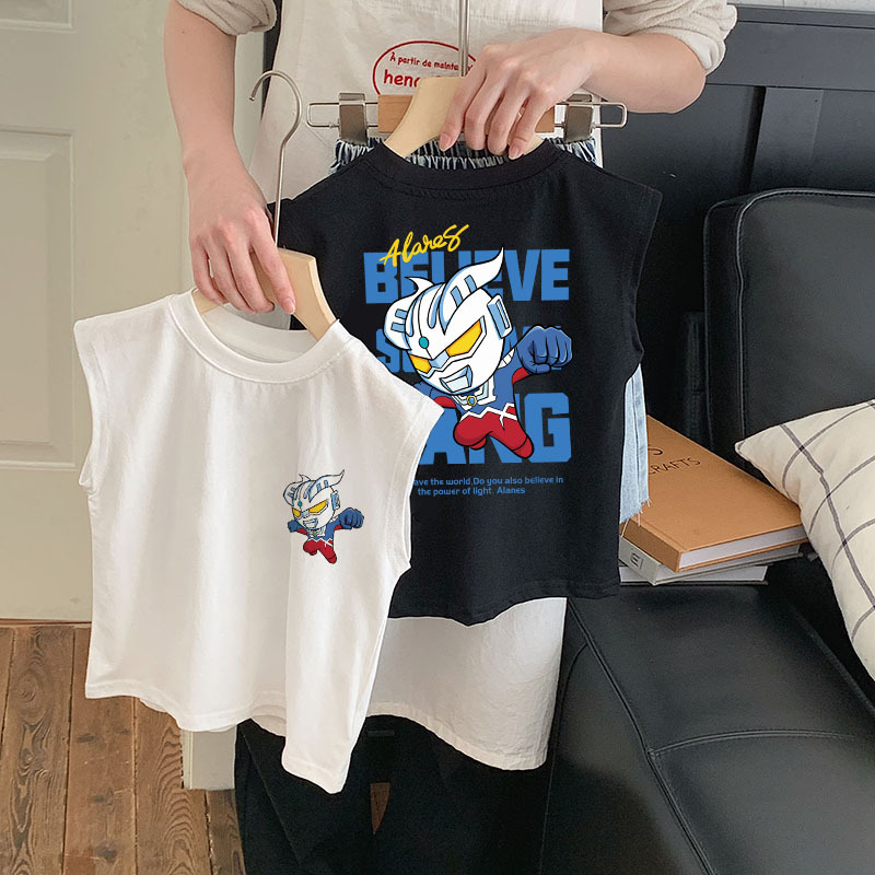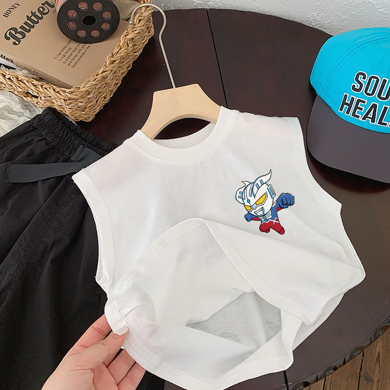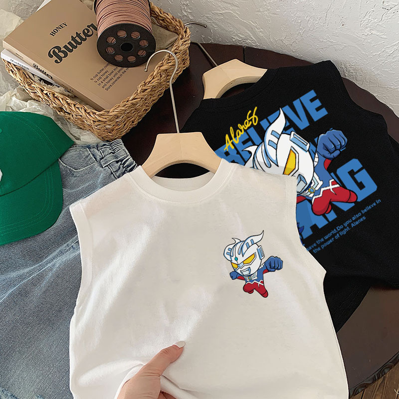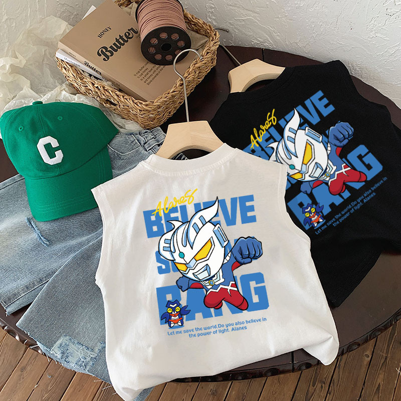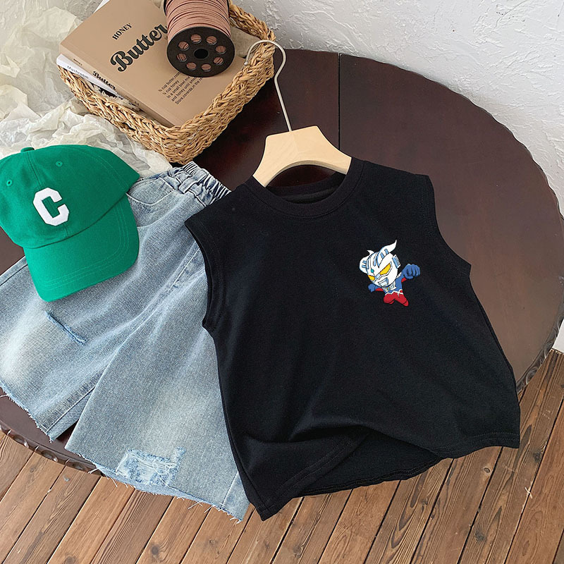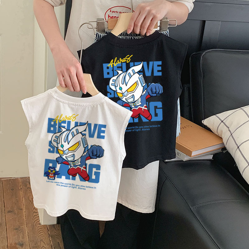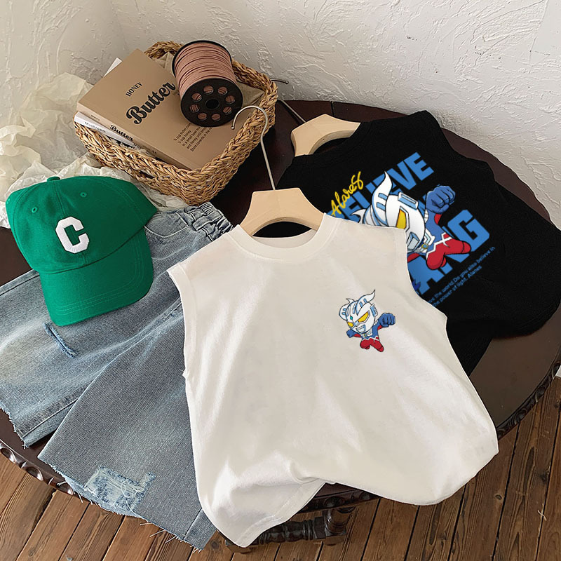 국경 간 면화 어린이 조끼 여름 소년 민소매 만화 티셔츠 아기 여름 인쇄 톱 소년 여름 원피스스토어 가기