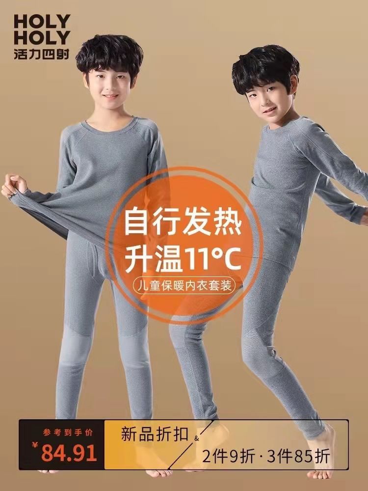 드 벨벳 따뜻한 어린이 자기 난방 섬유 속옷 세트 소년의 따뜻한 가을 옷 가을과 겨울 바지 소녀 따뜻한 탑스토어 가기