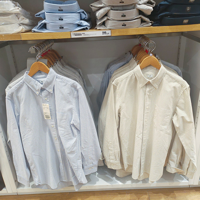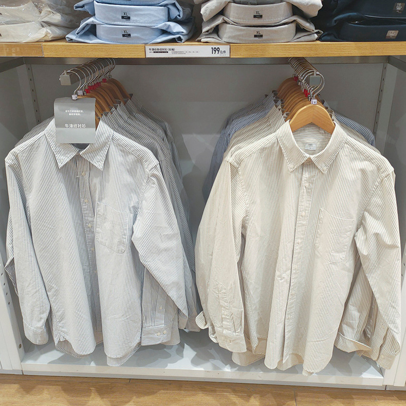 2024 남자 여자 옥스포드 줄무늬 셔츠/긴 소매 셔츠 470294/462367/467442스토어 가기