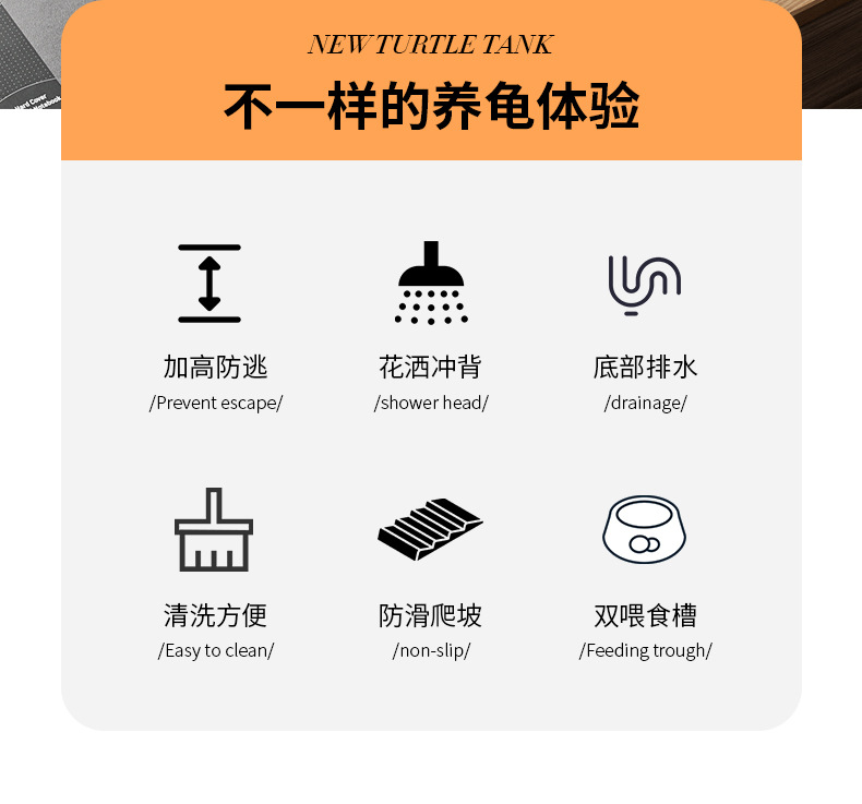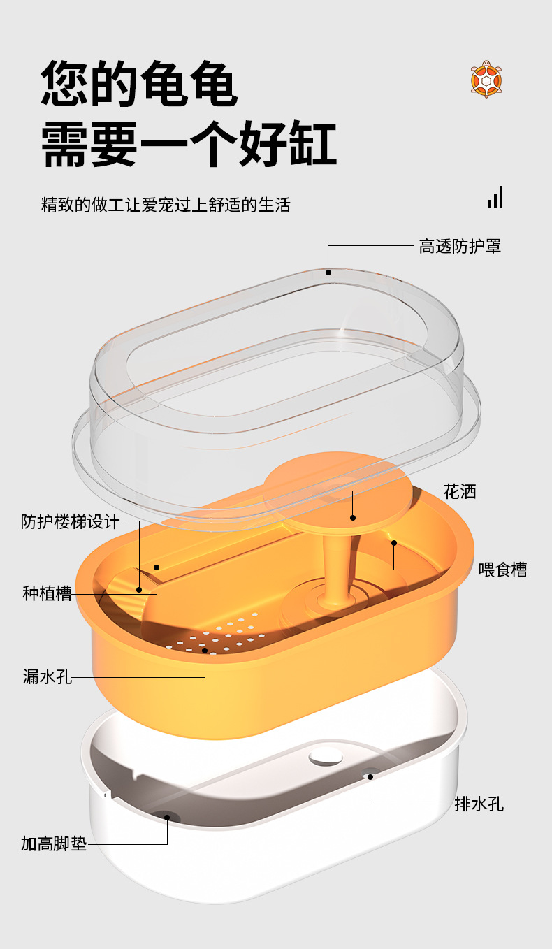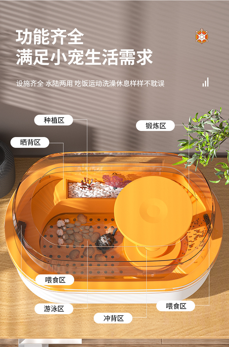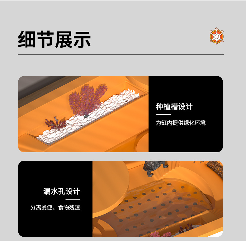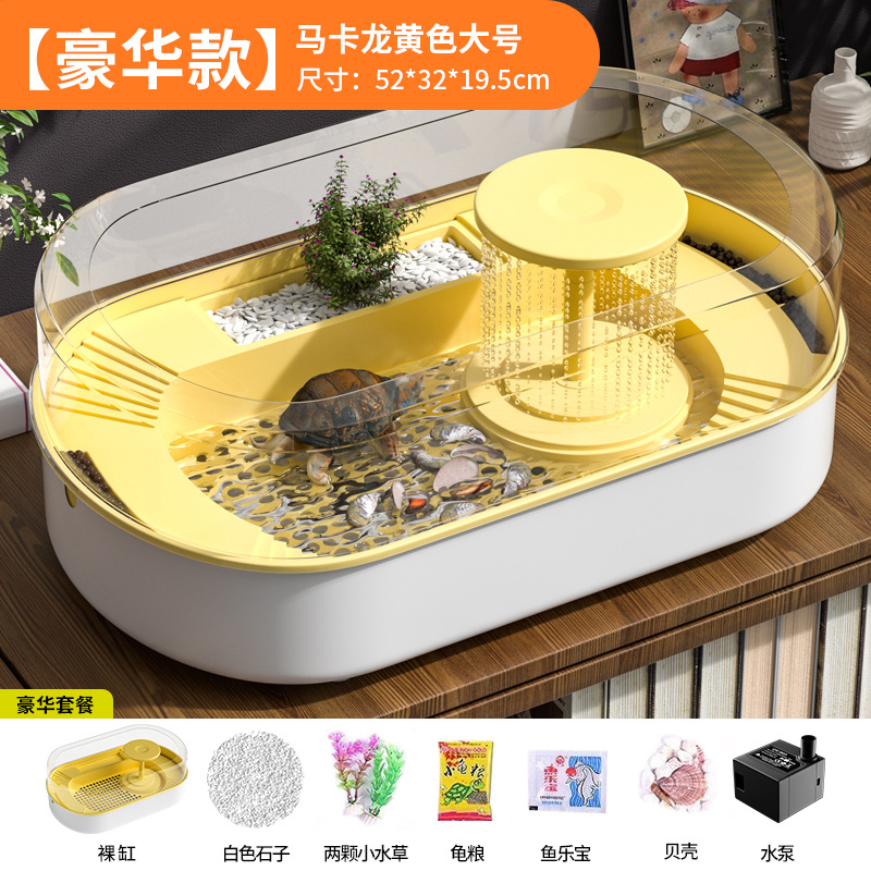 거북이 수유 탱크 가정용 거북이 먹이 상자 뚜껑 배수 테이블이있는 거북이 럭셔리 빌라를위한 특별한 생태 풍경스토어 가기
