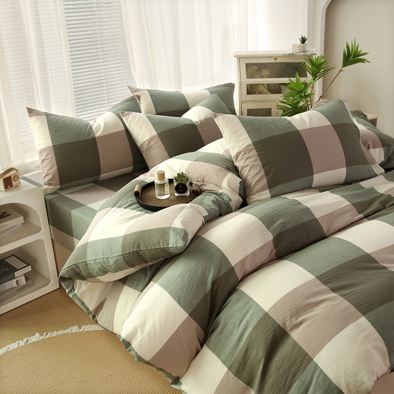 순면 원단, 순면 원사 염색, 워싱면, 소스 공장 맞춤형 도매 와이드 체크 무늬 시트 및 이불 커버 원단스토어 가기