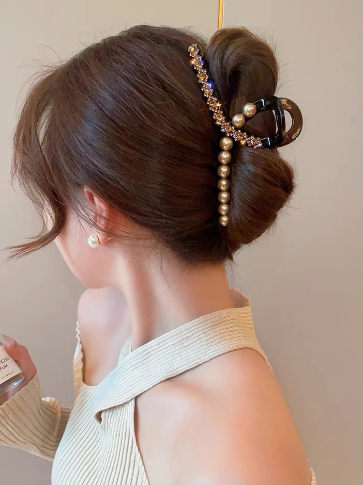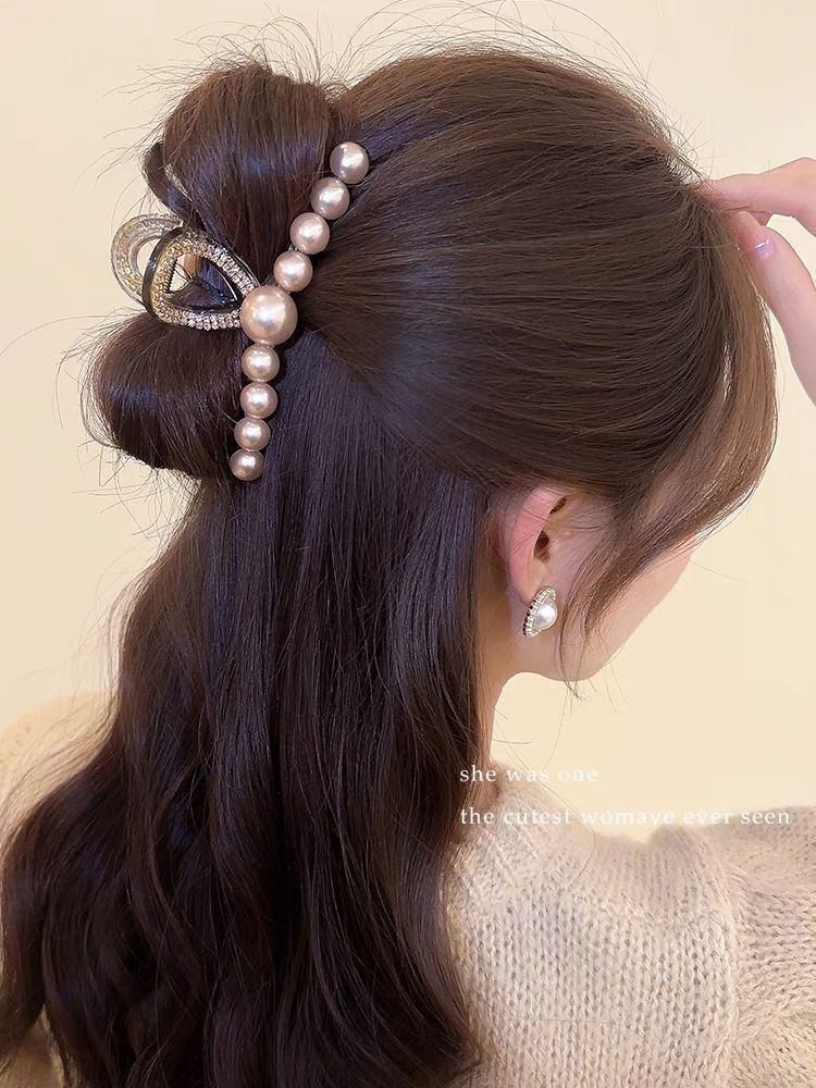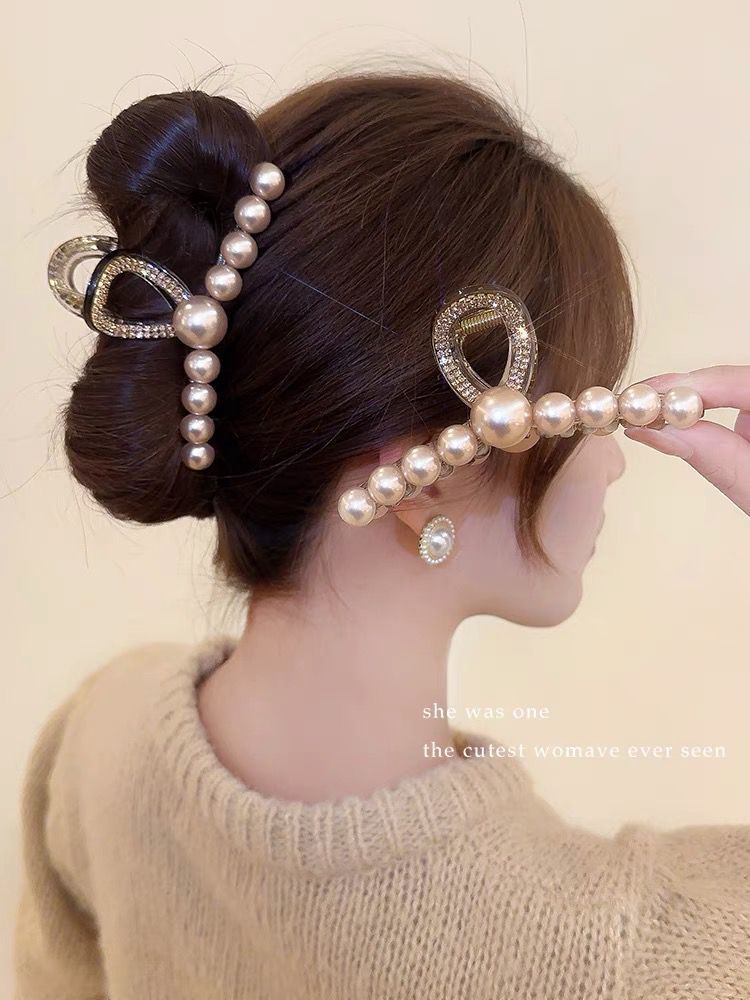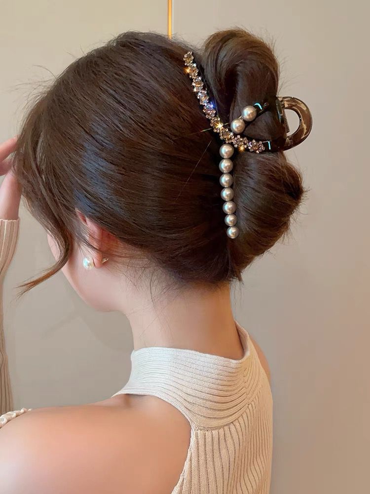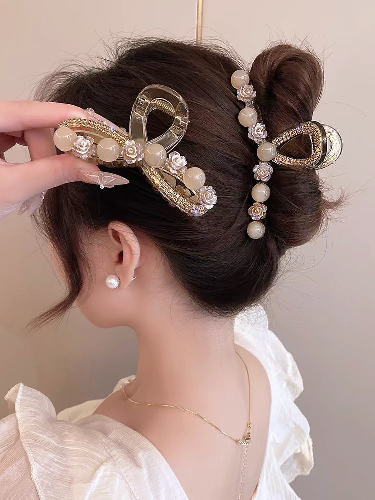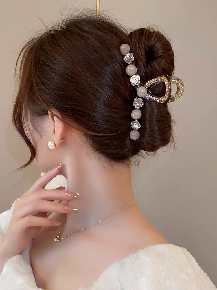 가벼운 고급 고급 꽃 진주 라인스톤 잡아 클립 여성의 머리 머리 상어 클립 큰 머리핀 머리핀 머리핀 머리핀 머리핀스토어 가기