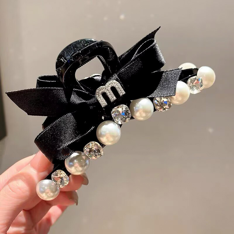 • 69번 M 사이즈 나비 리본 진주 집게핀