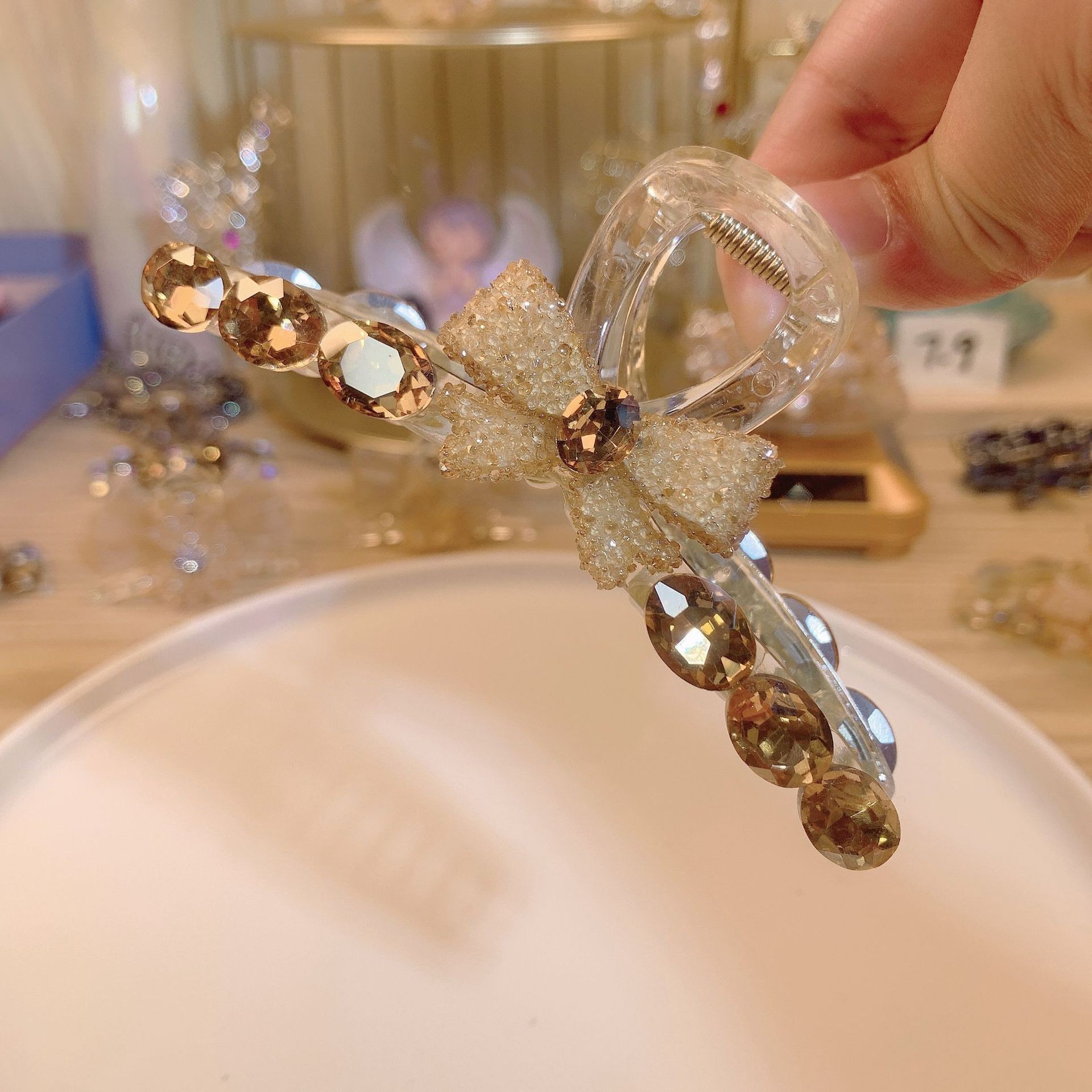 • 3#라지 샴페인 라인스톤 보우 클립 11cm