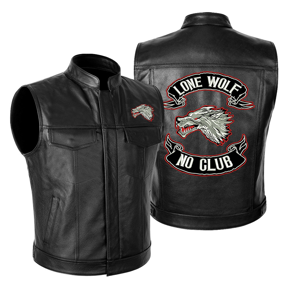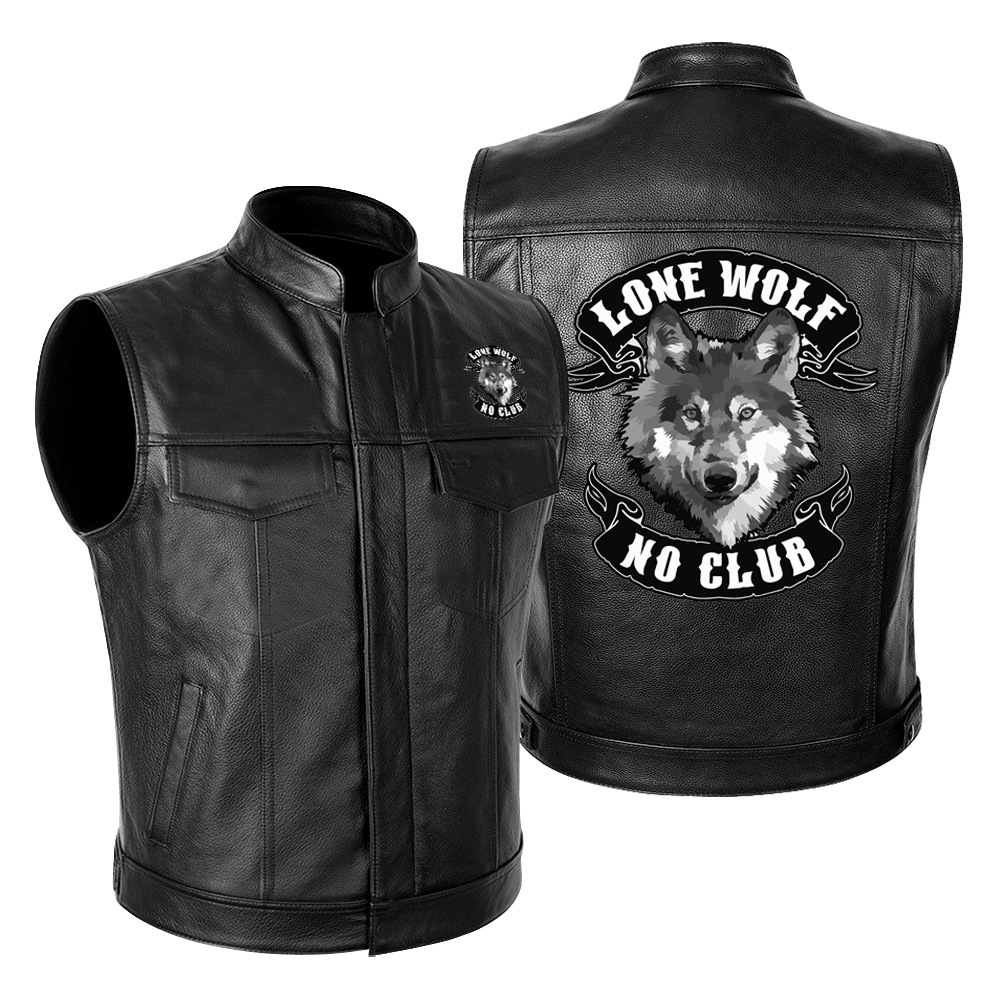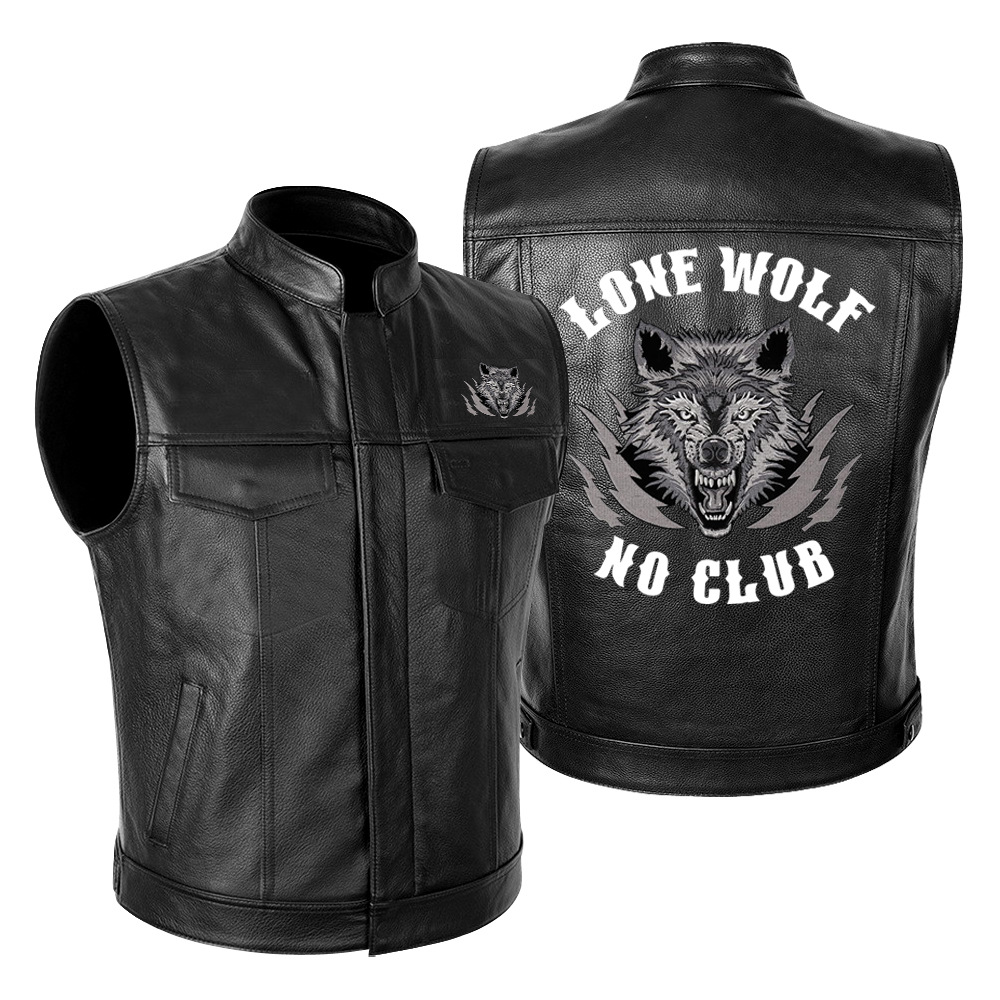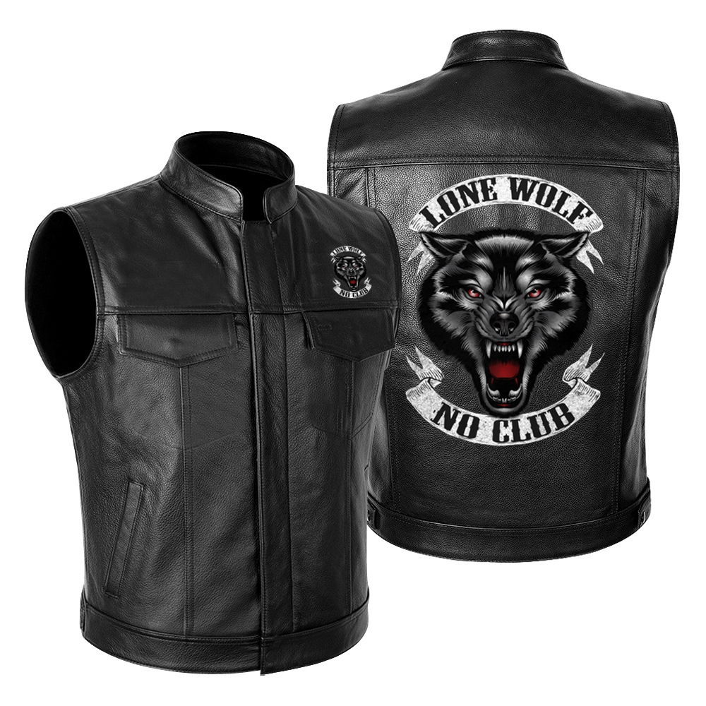 국경 간 대외 무역 LONE WOLF NO CLUB Wolf Head 하이 엔드 오토바이 가죽 재킷 남성 PU 오토바이 레이싱 세트