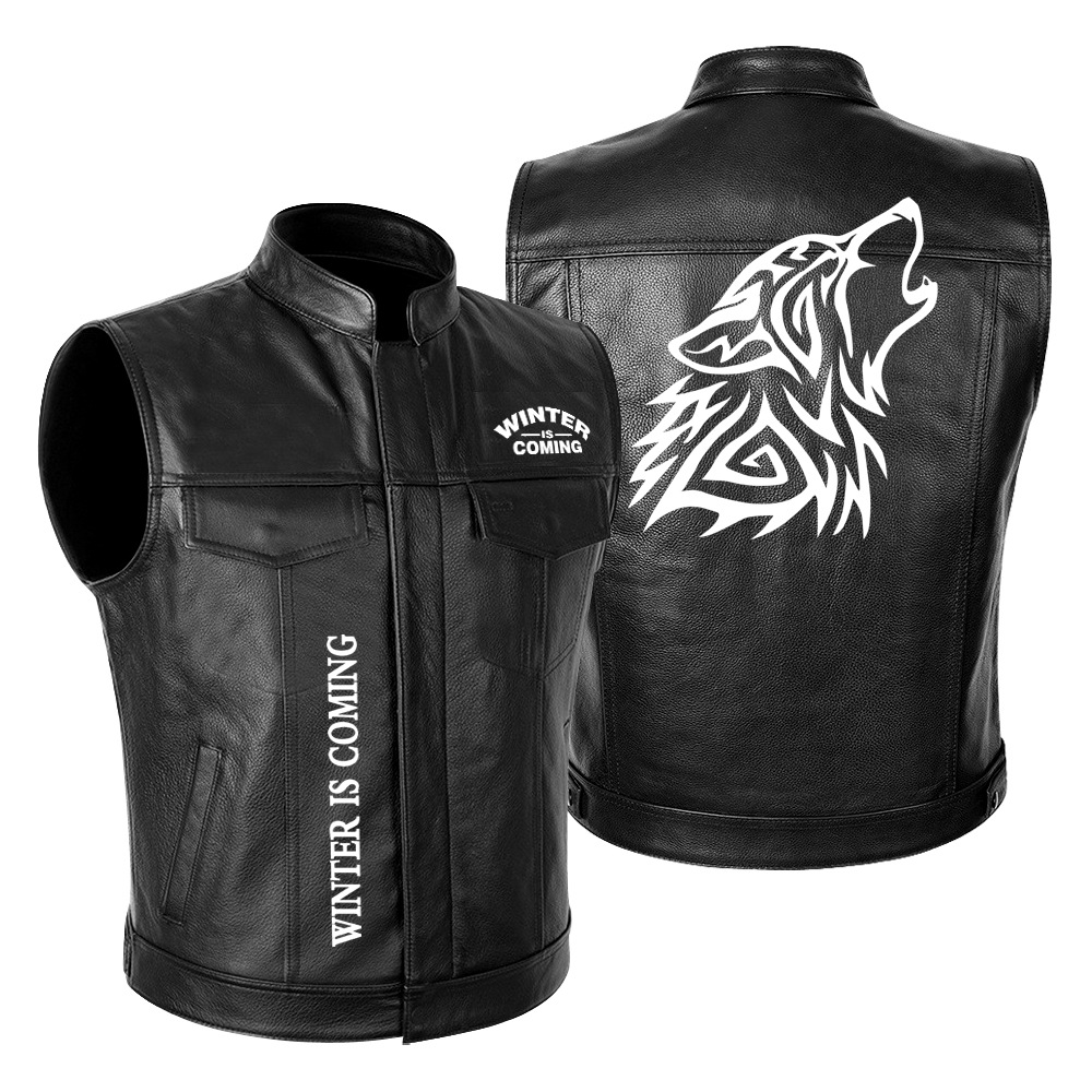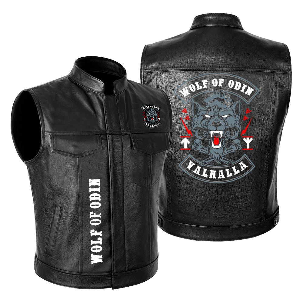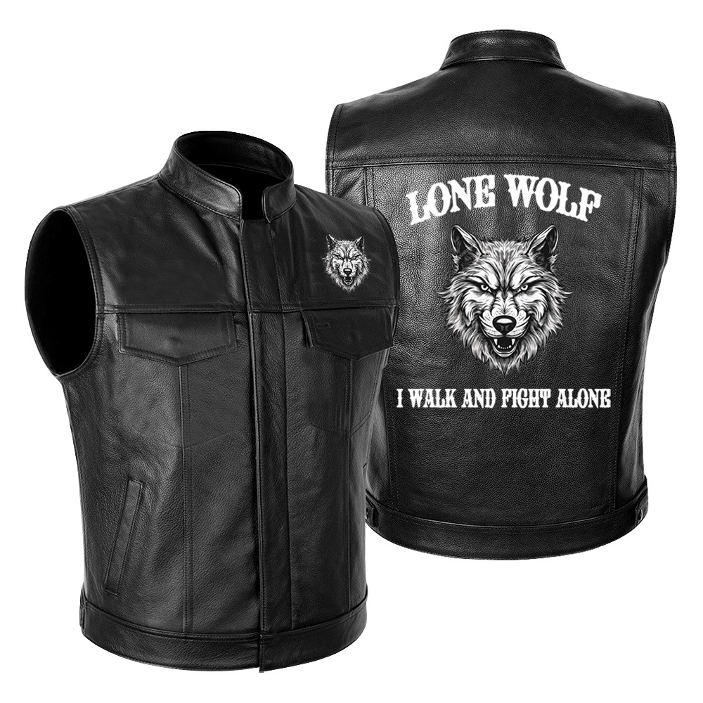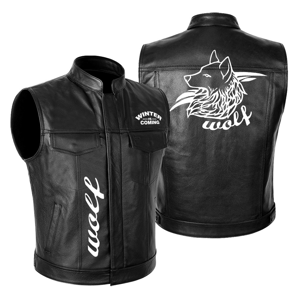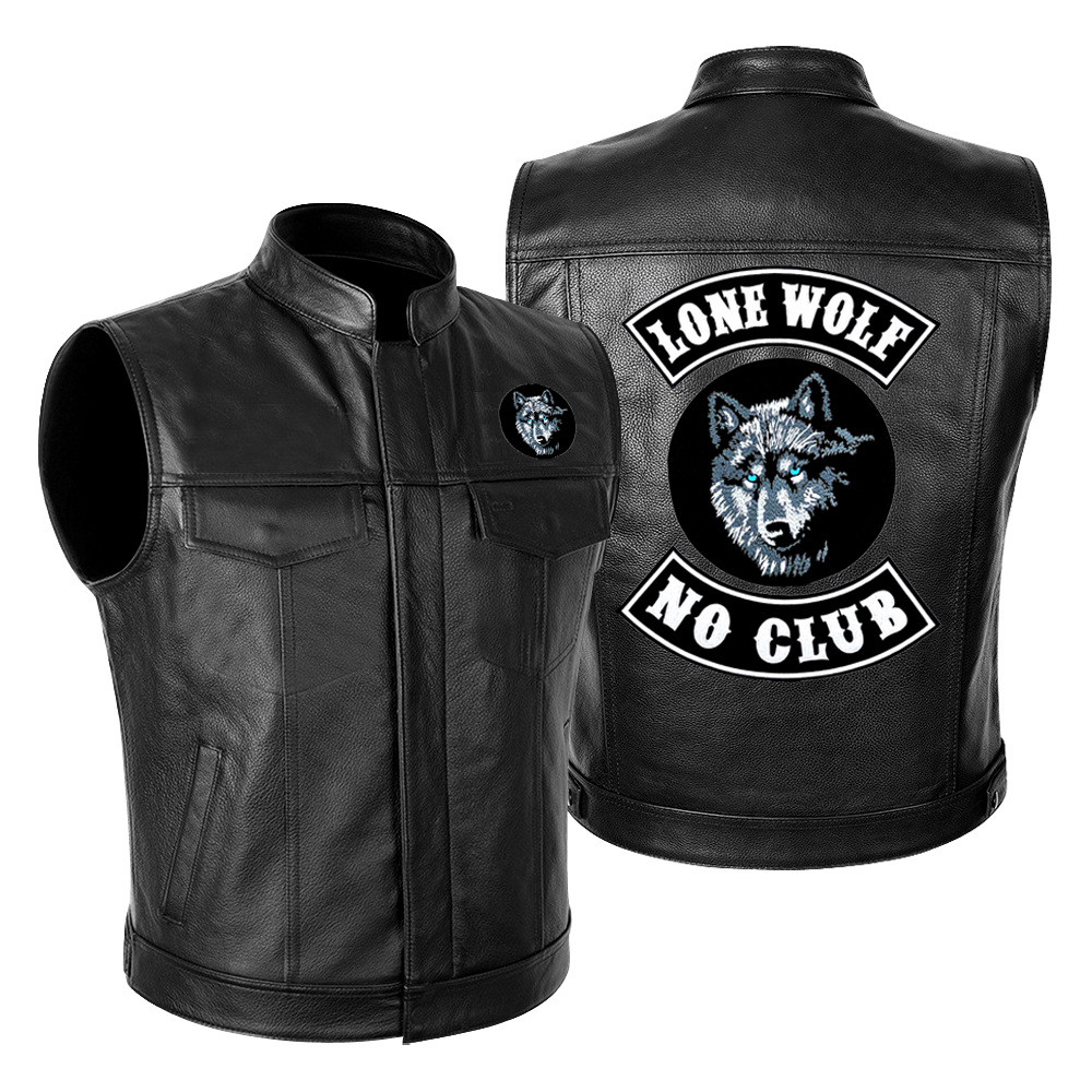 국경 간 대외 무역 LONE WOLF NO CLUB Wolf Head 하이 엔드 오토바이 가죽 재킷 남성 PU 오토바이 레이싱 세트