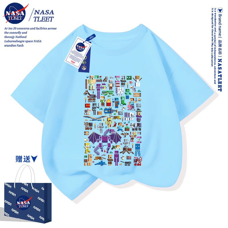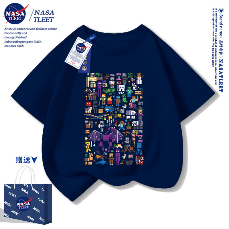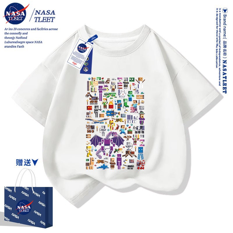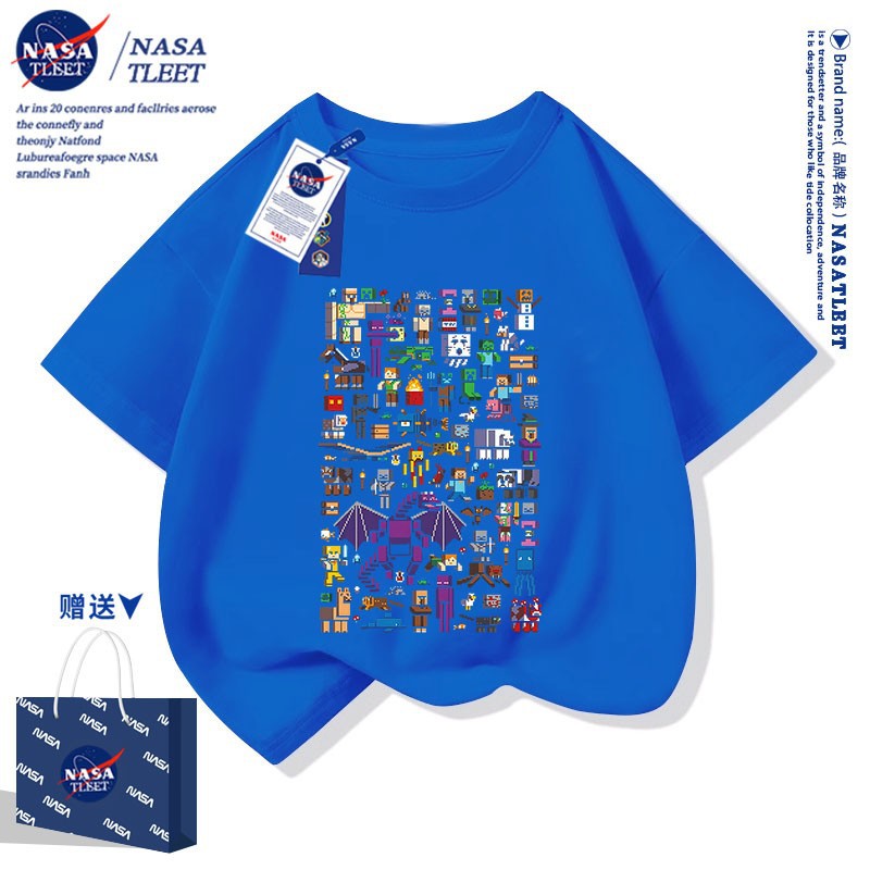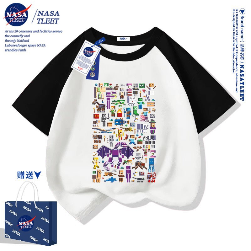 NASA 공동 브랜드 새로운 올 매치 퓨어 코튼베이스 셔츠 여름 남녀 아동복 간단한 유행 반소매 코티플 공포 티셔츠