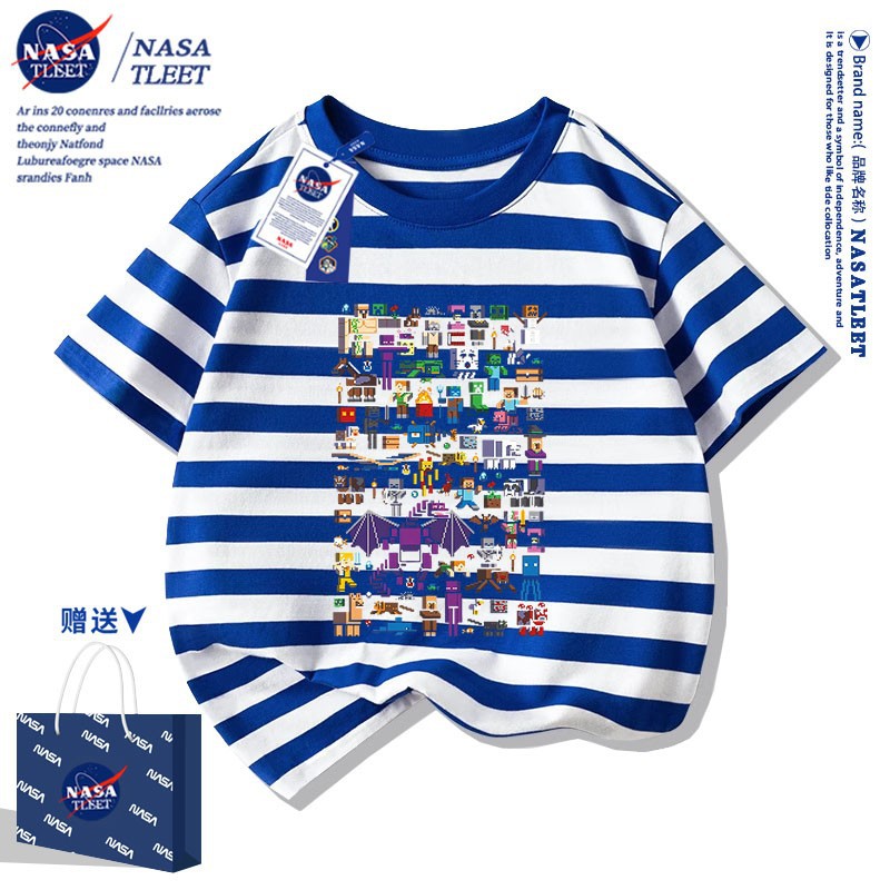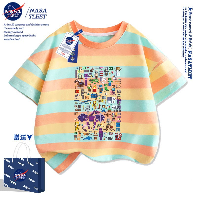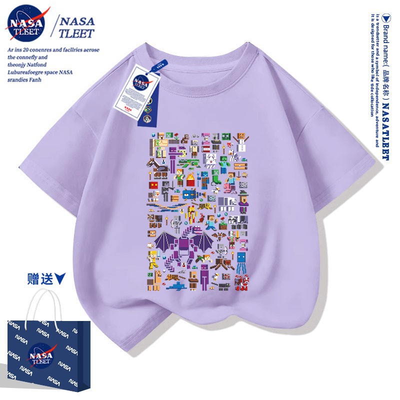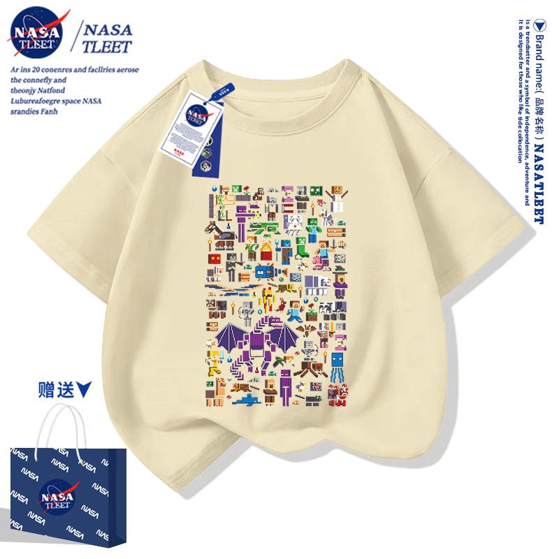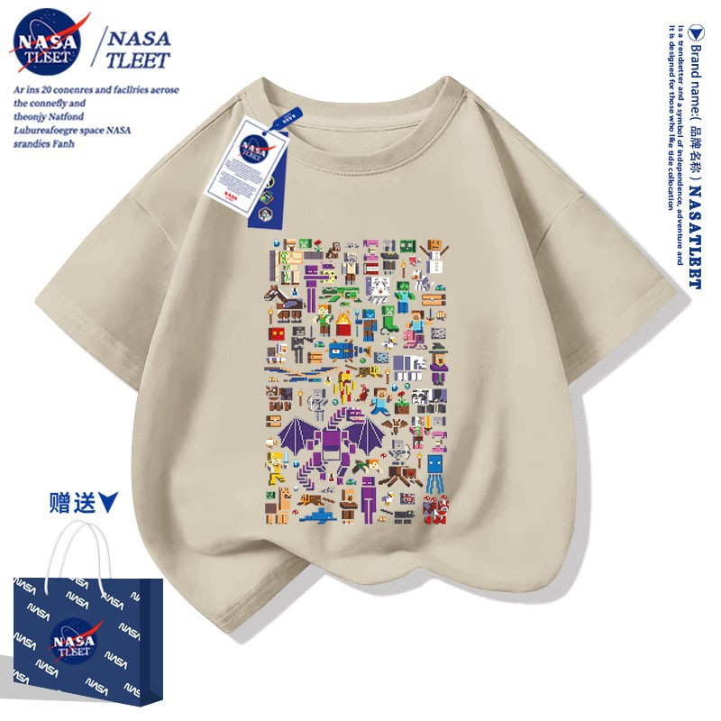 NASA 공동 브랜드 새로운 올 매치 퓨어 코튼베이스 셔츠 여름 남녀 아동복 간단한 유행 반소매 코티플 공포 티셔츠