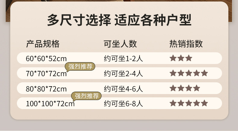• 갈색 두꺼워진 80개의 둥근 표면 [설치 불필요 및 보관 용이] 테이블 높이 72CM