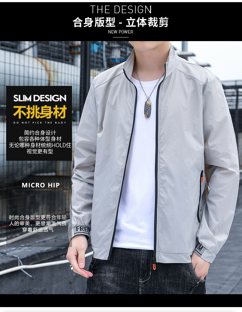 얇은 남성 자켓 스킨 의류 여름 여름 통기성 선 스크린 의류 아이스 실크 선 스크린 의류 남성 야외 코트 남성