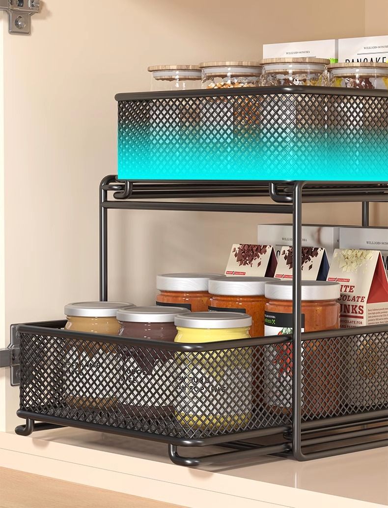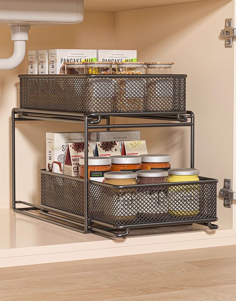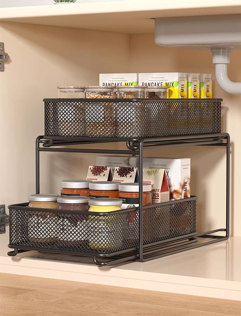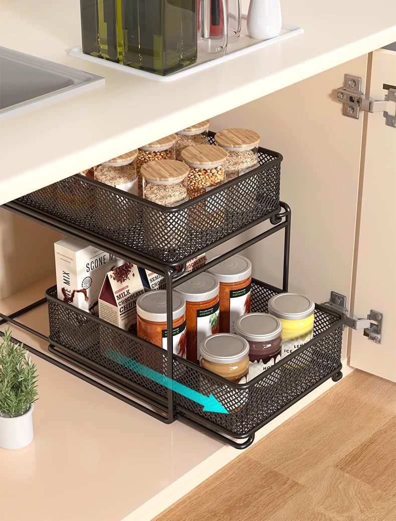 주방 보관 랙 다층 가정용 다기능 낮은 싱크 저장 선반 요리와 요리를위한 캐비닛 저장 선반