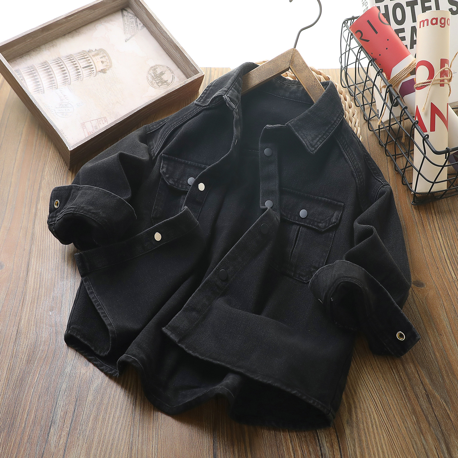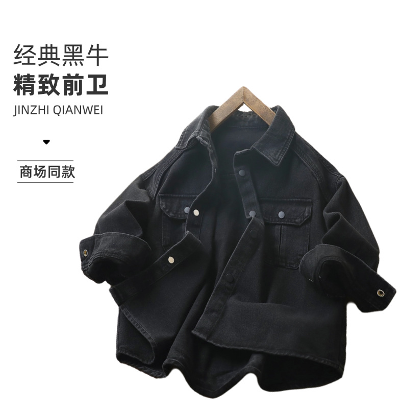남아용 블랙 데님 셔츠 2026 봄 아동용 두꺼운 셔츠 남아용 중대형 아동용 얇은 재킷 상의
