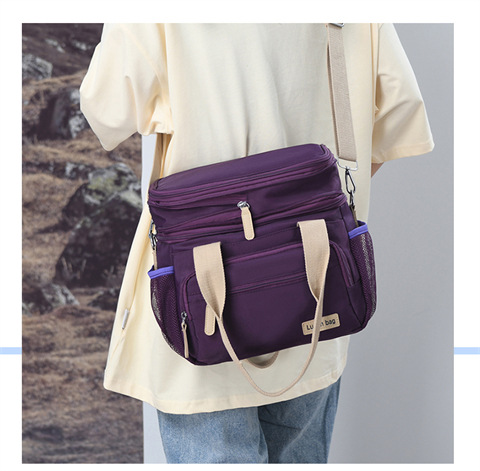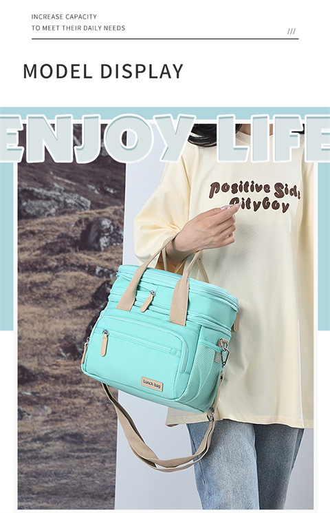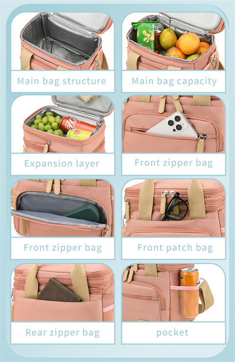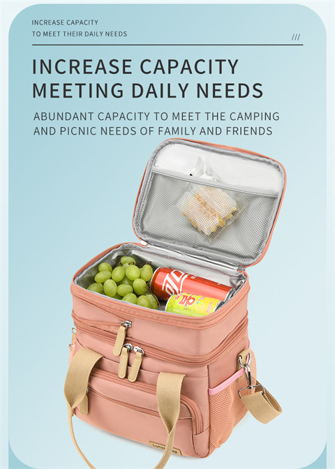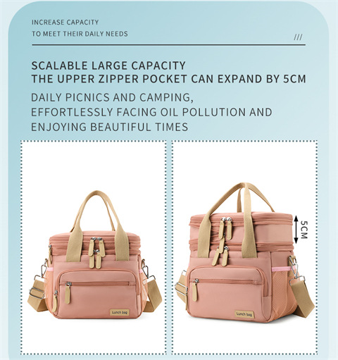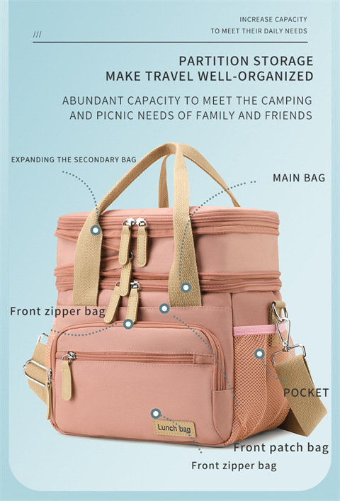 국경 이중 레이어 점심 가방 대용량 휴대용 아이스 백 누출 방지 휴대용 확장 가능한 점심 가방 피크닉 가방스토어 가기