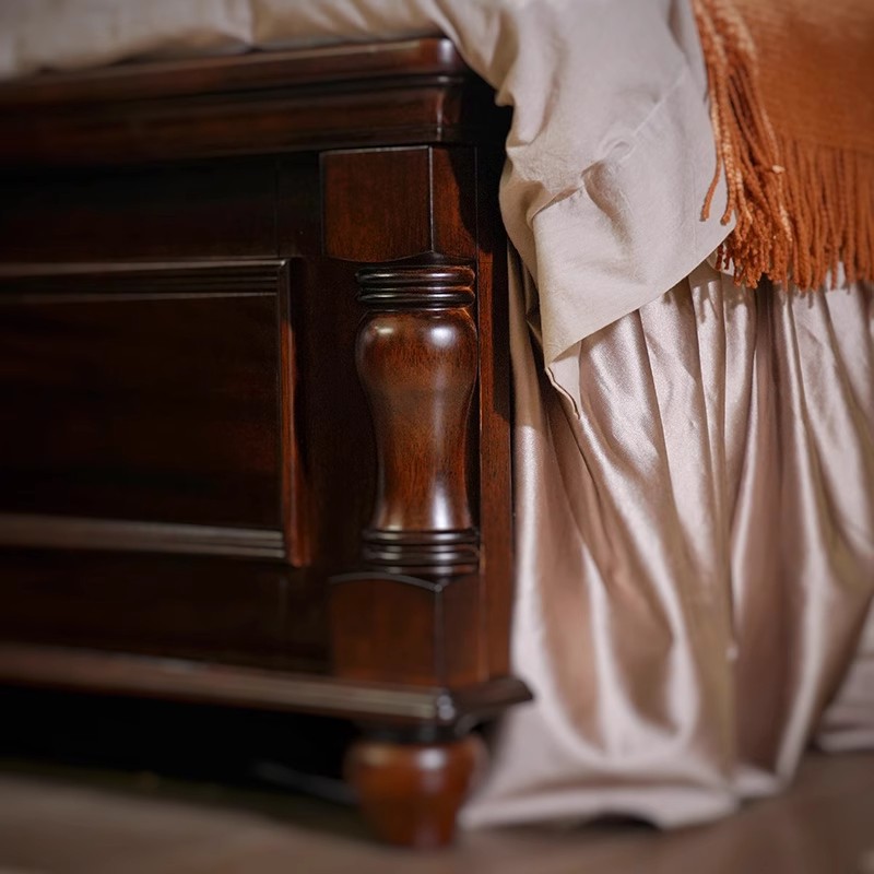 빌라 아메리칸 스타일 정품 가죽 레트로 솔리드 우드 블라썸 코어 우드 더블 침대 마스터 침실 소프트 백 아메리칸 스타일 라이트 럭셔리 침대