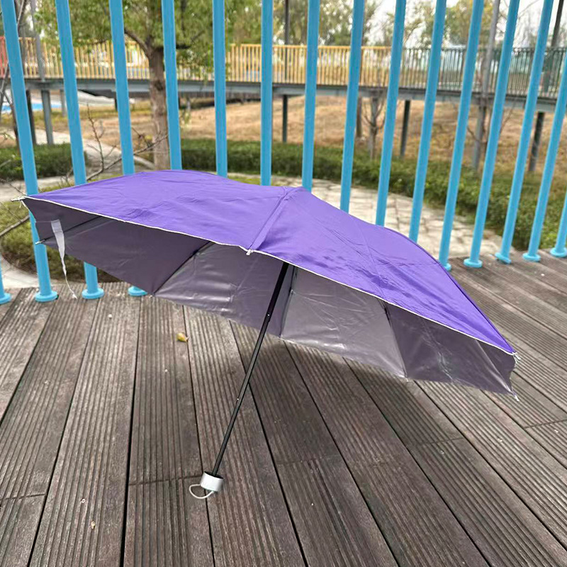 7 뼈 3 폴드 실버 고무 우산 일반 선 스크린 인쇄 가능한 로고 써니 비 우산 프로모션 선물 광고 우산스토어 가기