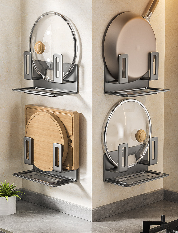 냄비 뚜껑 랙 주방 보관 랙 펀치없는 벽 교수형 다기능 도마 보드 배치 선반 도마 보드 스토리지 아티팩트