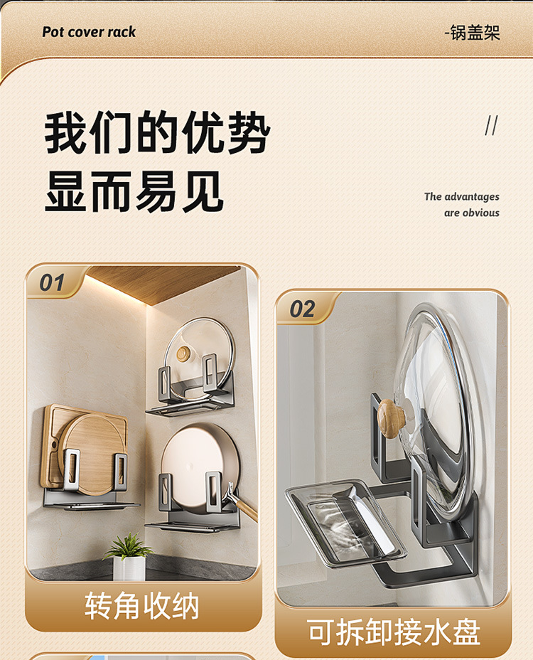 냄비 뚜껑 랙 주방 보관 랙 펀치없는 벽 교수형 다기능 도마 보드 배치 선반 도마 보드 스토리지 아티팩트스토어 가기