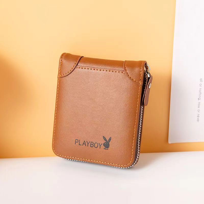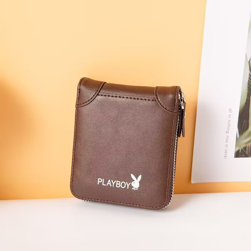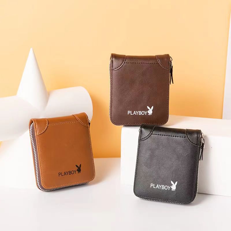 정품 플레이 보이 하이 엔드 지갑 레트로 남자 짧은 다기능 한국 스타일 지갑 카드 홀더 운전 면허 지퍼 백