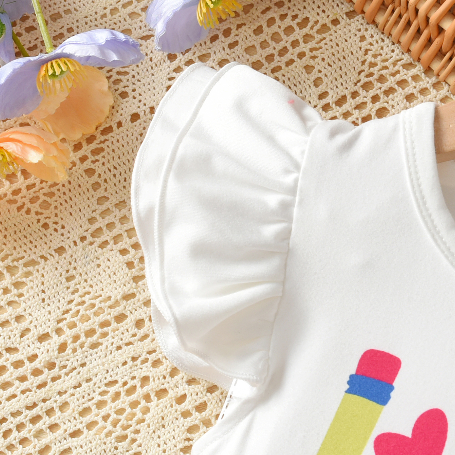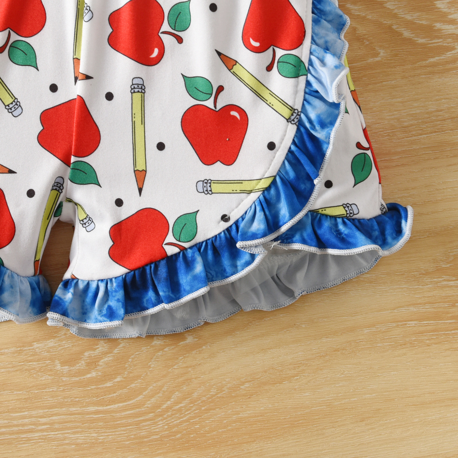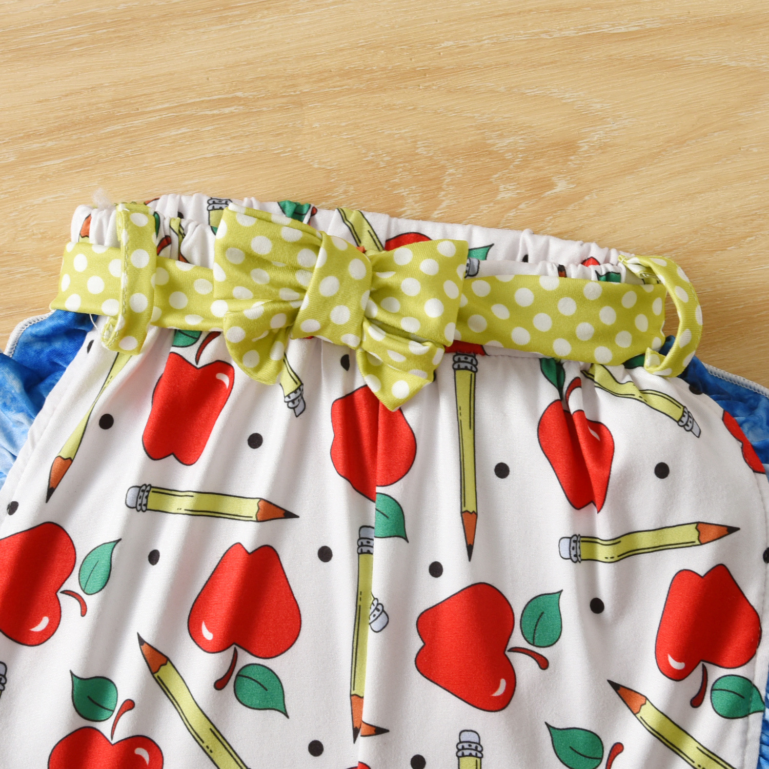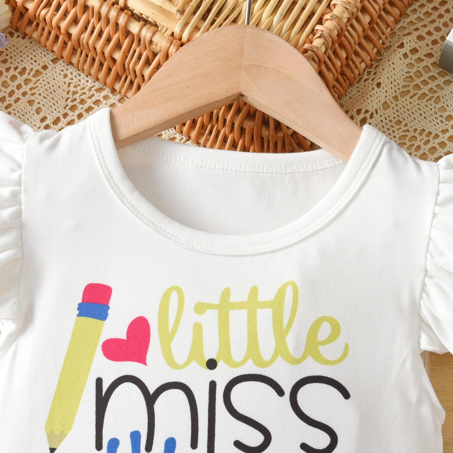 학교 시즌 캐주얼 서양식 소녀의 편지 인쇄 비행 소매 반팔 티셔츠 러플 반바지 벨트 세트