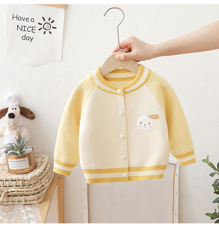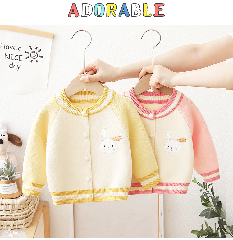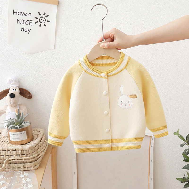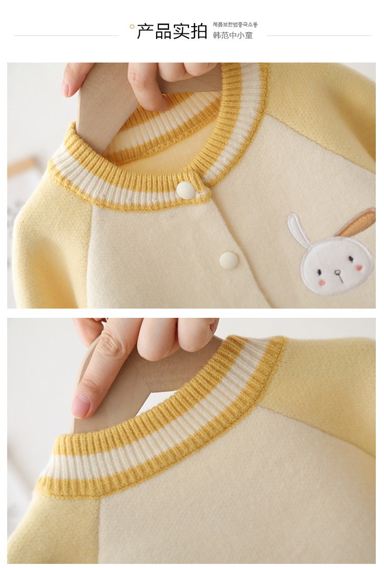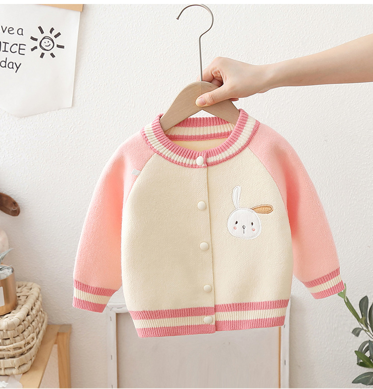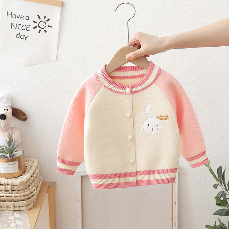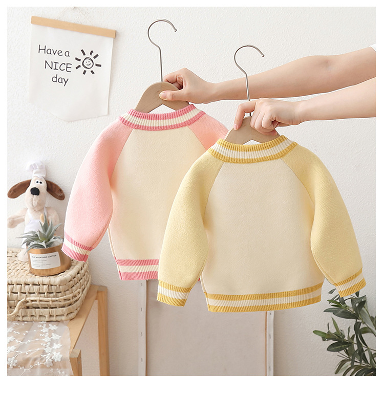 2024 년 새로운 소녀 스웨터 카디건 서양식 어린이 가을 어린이 니트 코트 야구 세트 조수스토어 가기