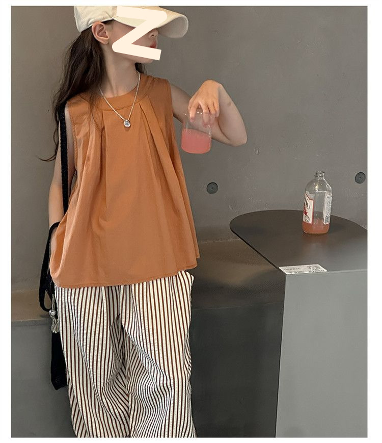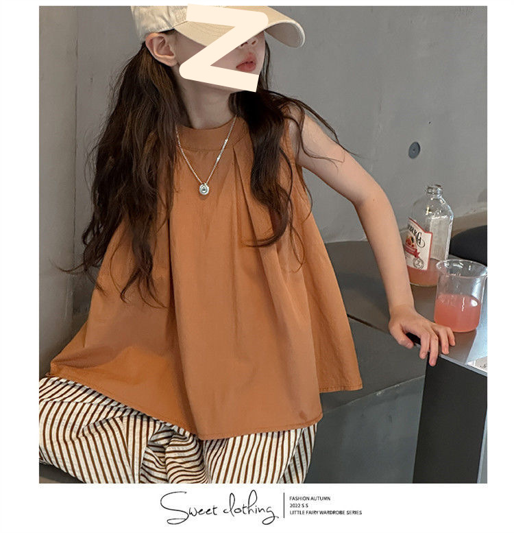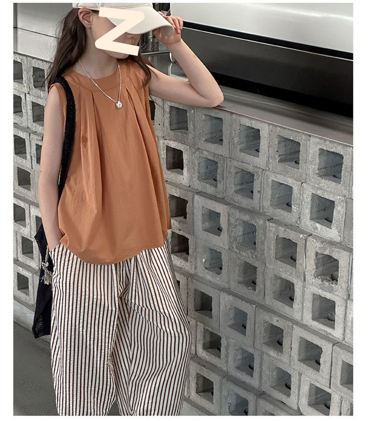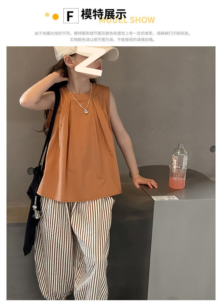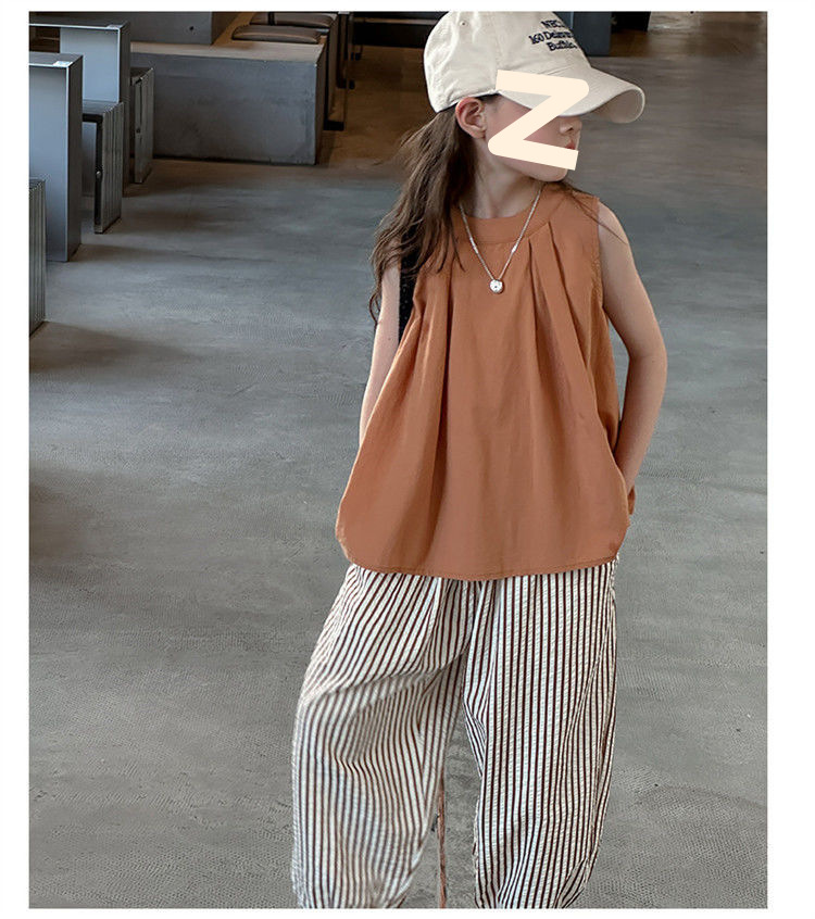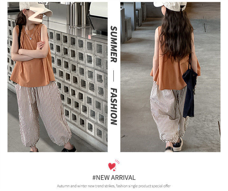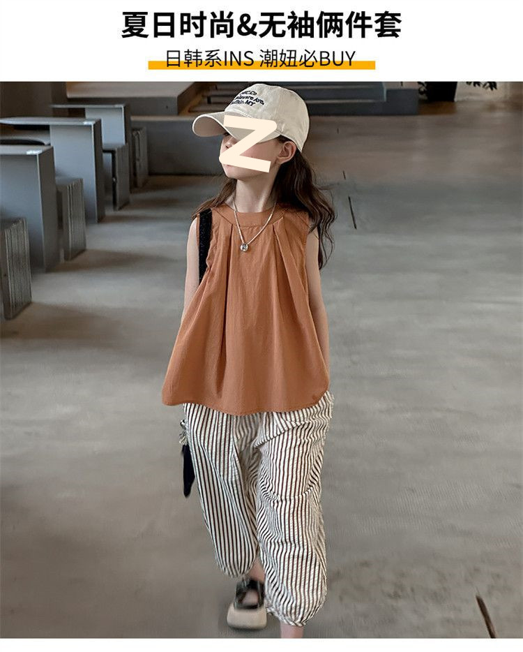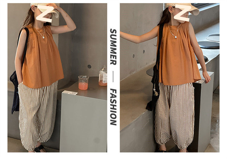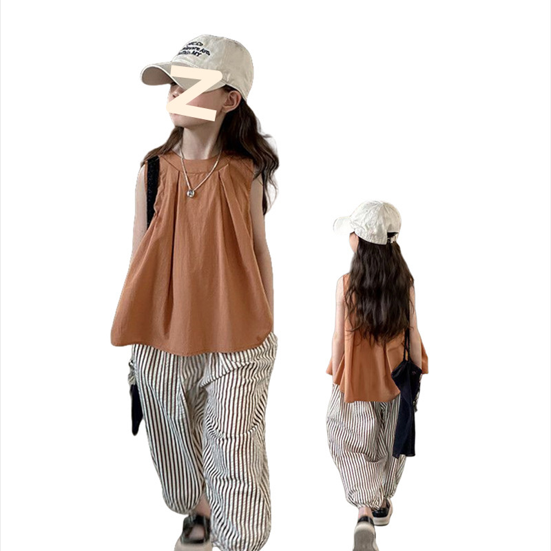 여학생 여름 얇은 쉬폰 조끼 바지 투피스 세트 2024 중학교 어린이를위한 새로운 스타일 유행 스포츠 세트