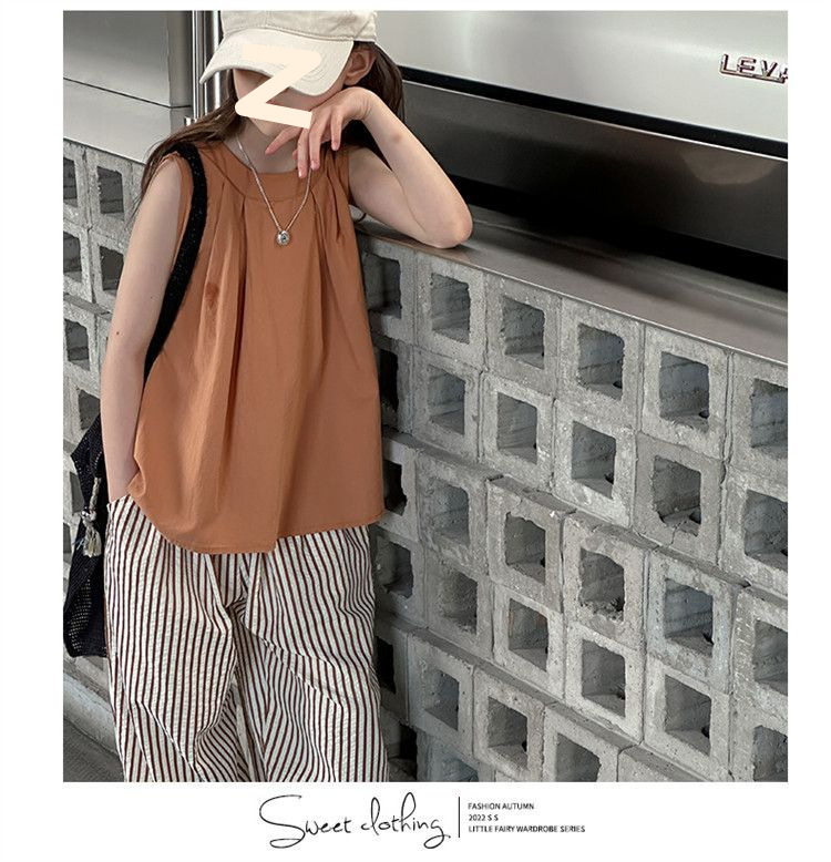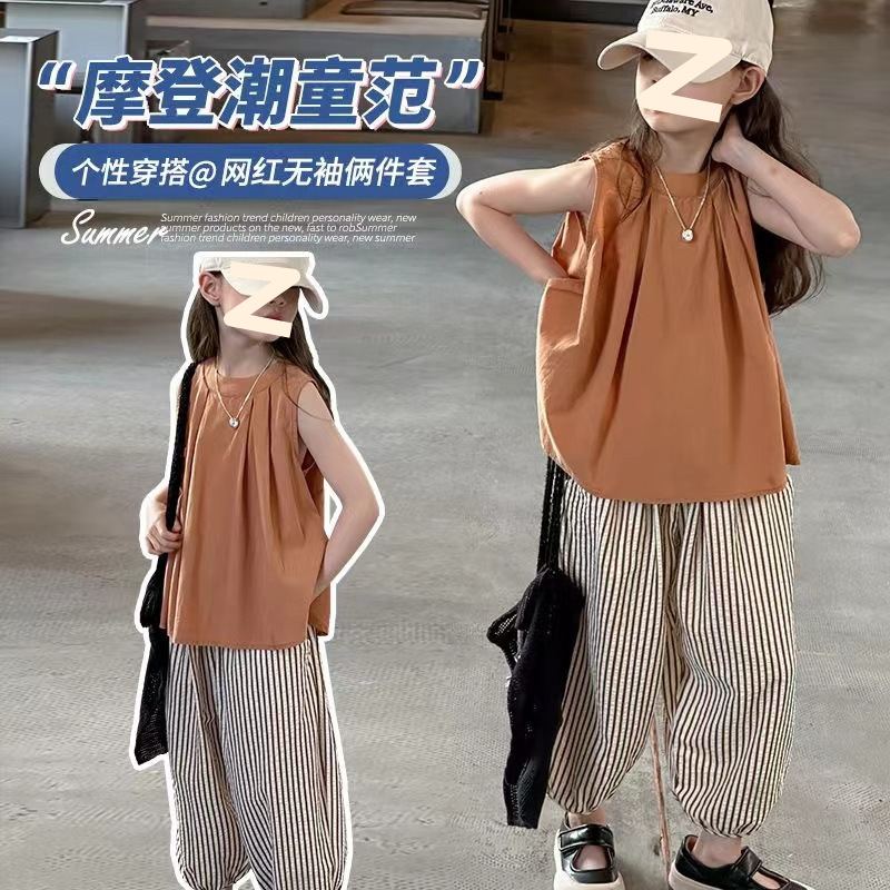 여학생 여름 얇은 쉬폰 조끼 바지 투피스 세트 2024 중학교 어린이를위한 새로운 스타일 유행 스포츠 세트스토어 가기