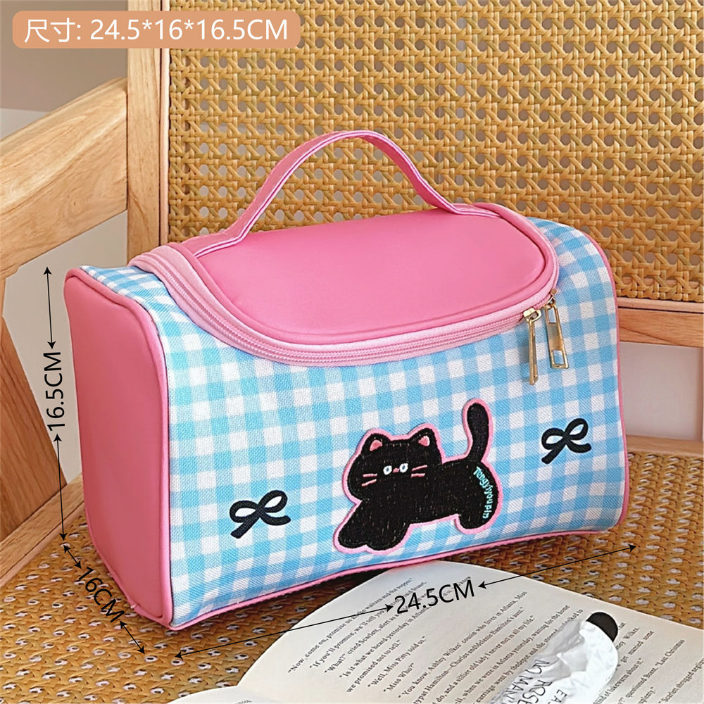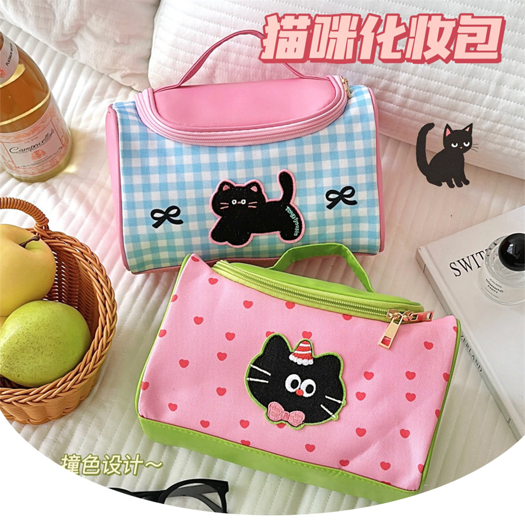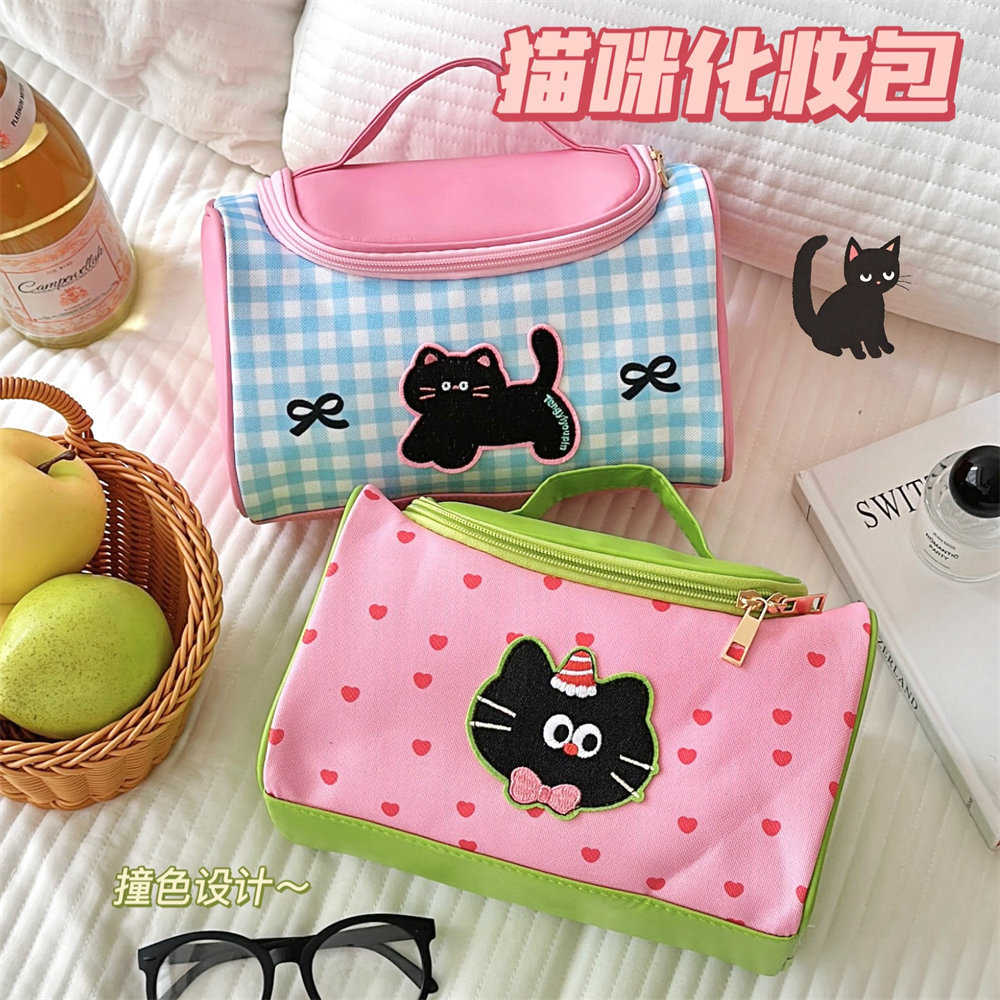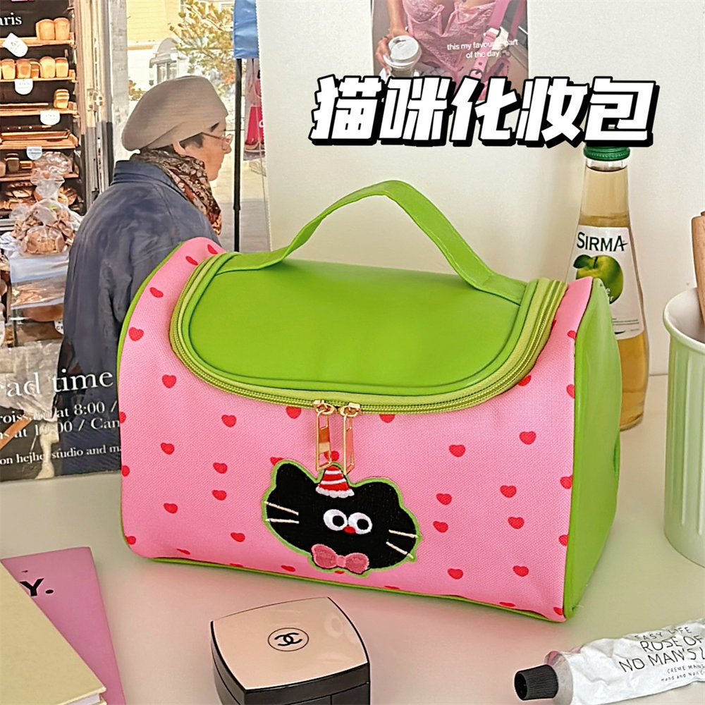 Tengyi 원래 귀여운 만화 새끼 고양이 휴대용 화장품 가방 소녀 휴대용 대용량 화장품 보관 가방 새로운 스타일스토어 가기