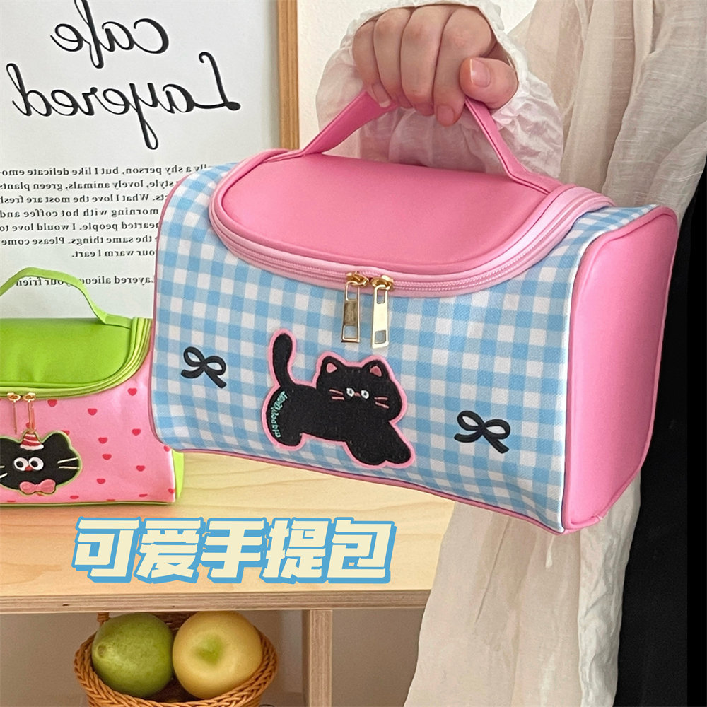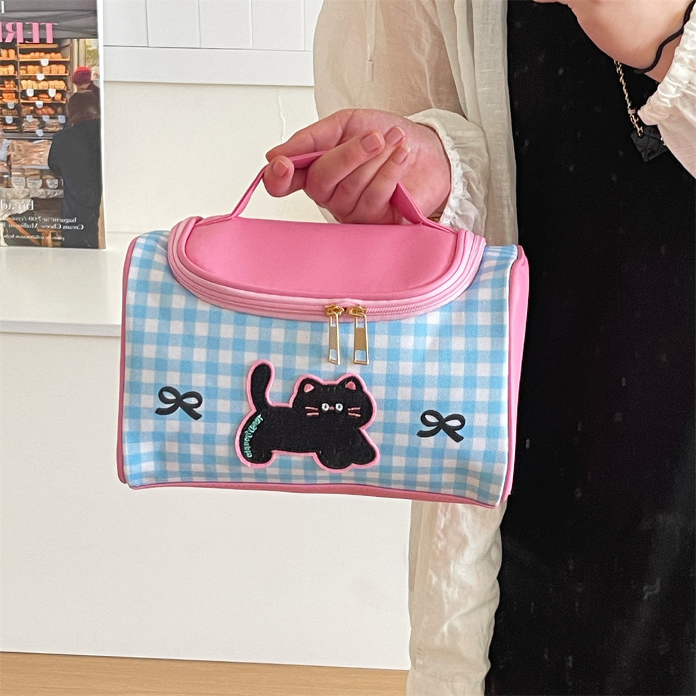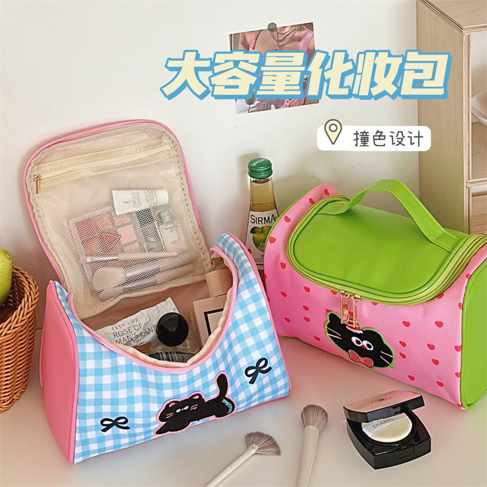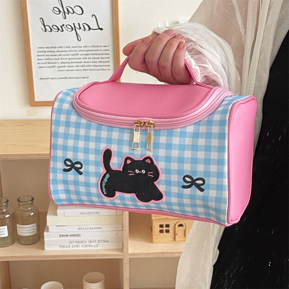 Tengyi 원래 귀여운 만화 새끼 고양이 휴대용 화장품 가방 소녀 휴대용 대용량 화장품 보관 가방 새로운 스타일스토어 가기