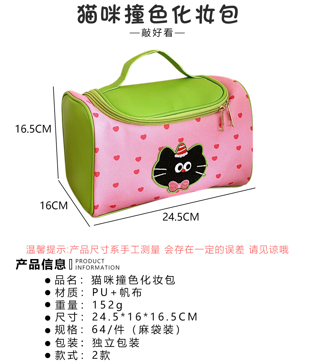 • 2 # 핑크 녹색 새끼 고양이 화장품 가방