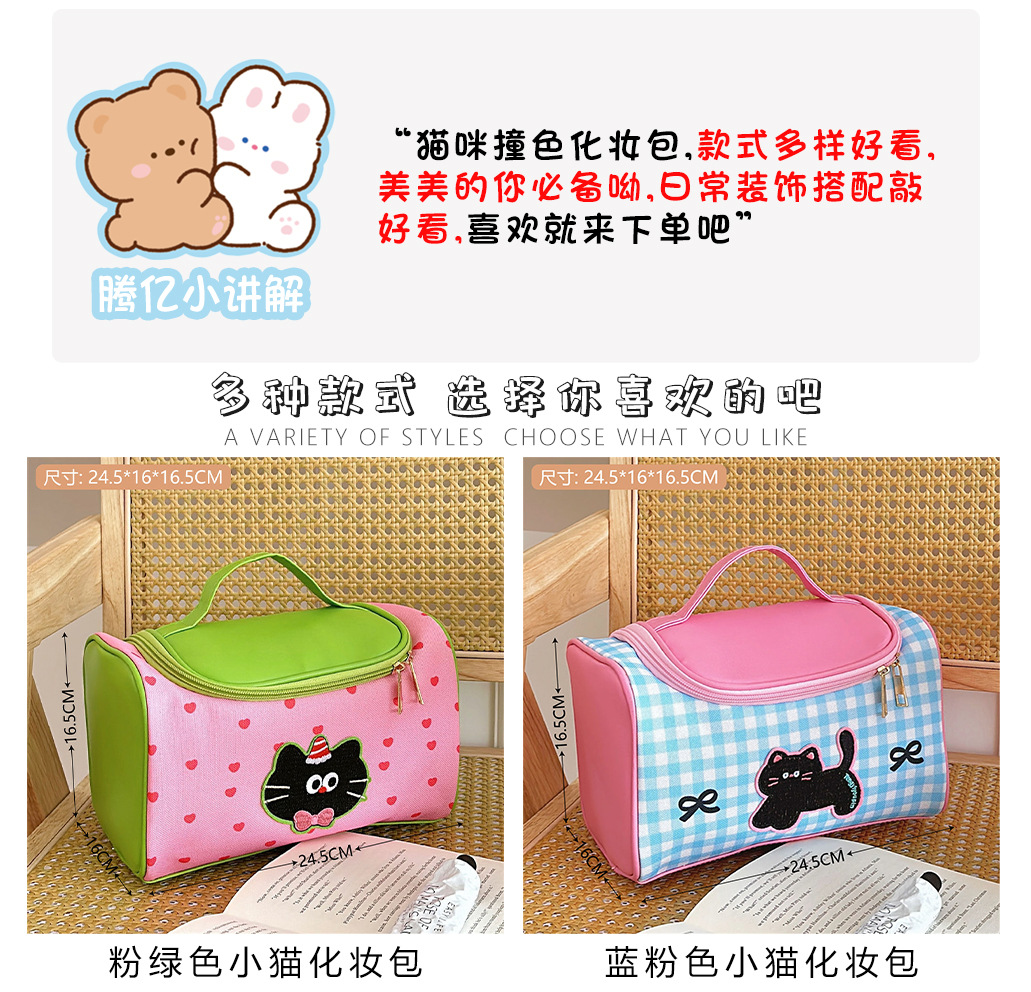 Tengyi 원래 귀여운 만화 새끼 고양이 휴대용 화장품 가방 소녀 휴대용 대용량 화장품 보관 가방 새로운 스타일
