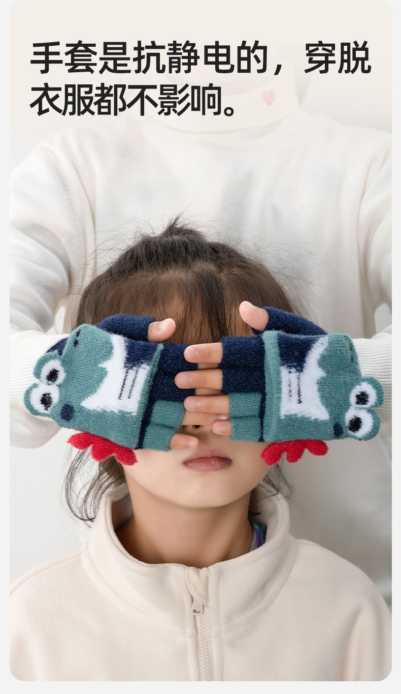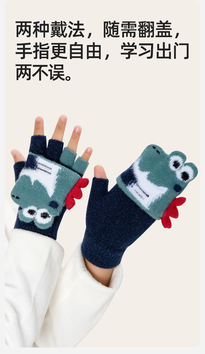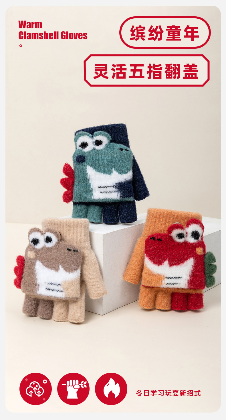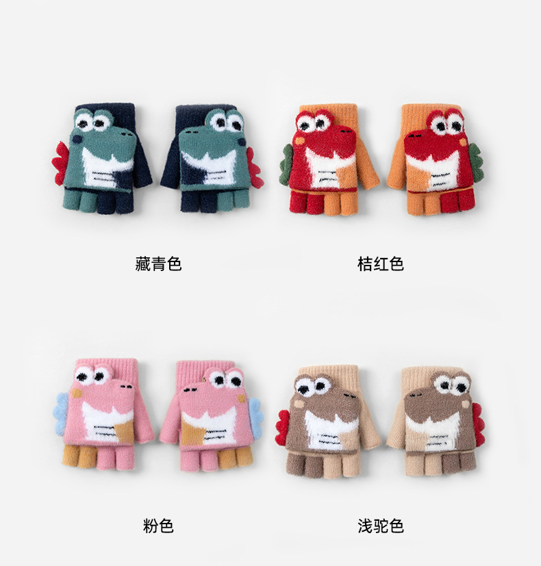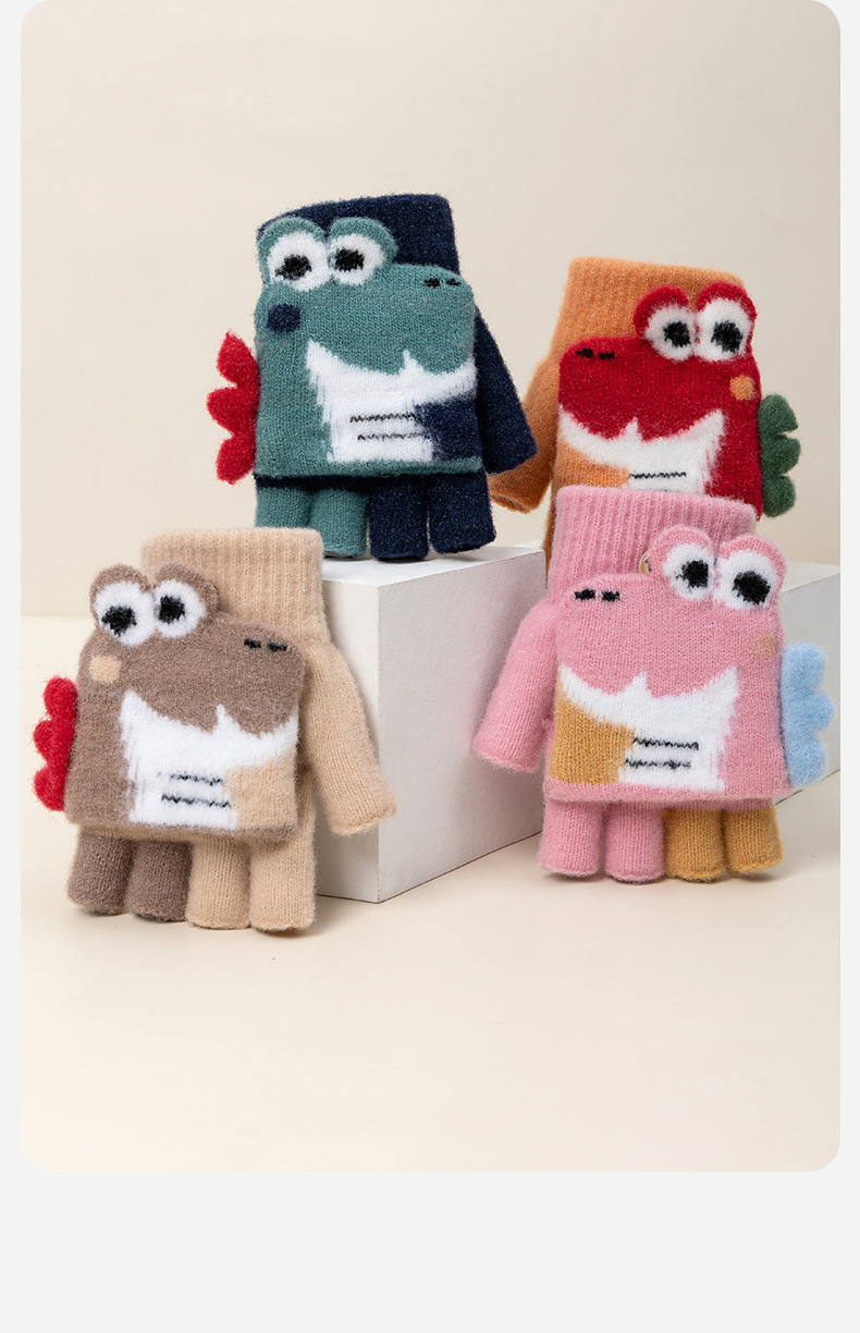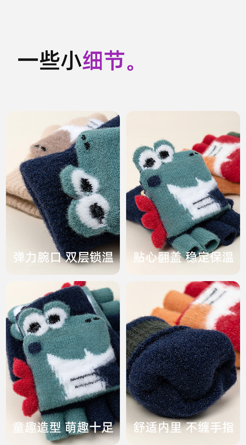 만화 공룡 귀여운 중년 어린이 남녀 겨울 두껍게 차가운 방청 엑스트라 핑거 쓰기 따뜻한 유지 어린이 반 손가락 장갑스토어 가기